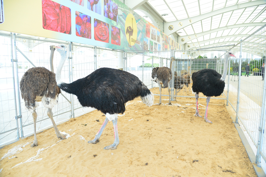«Ajaýyp ussat halal önümleri» ES, cattle-breeding complex «Sahabatly», «Maksada okgunly» individual enterprise also display results of their selection work in the field of animal industries. Their live exhibits – calves of breeds «Simmental», «Goldstein» and «Angus» - serve results of new meat and dairy breeds of cows adapted to environmental conditions of Turkmenistan. Many visitors gather at open-air cages with beautiful pheasants and quails, African ostriches, grown on the private ostrich farm.