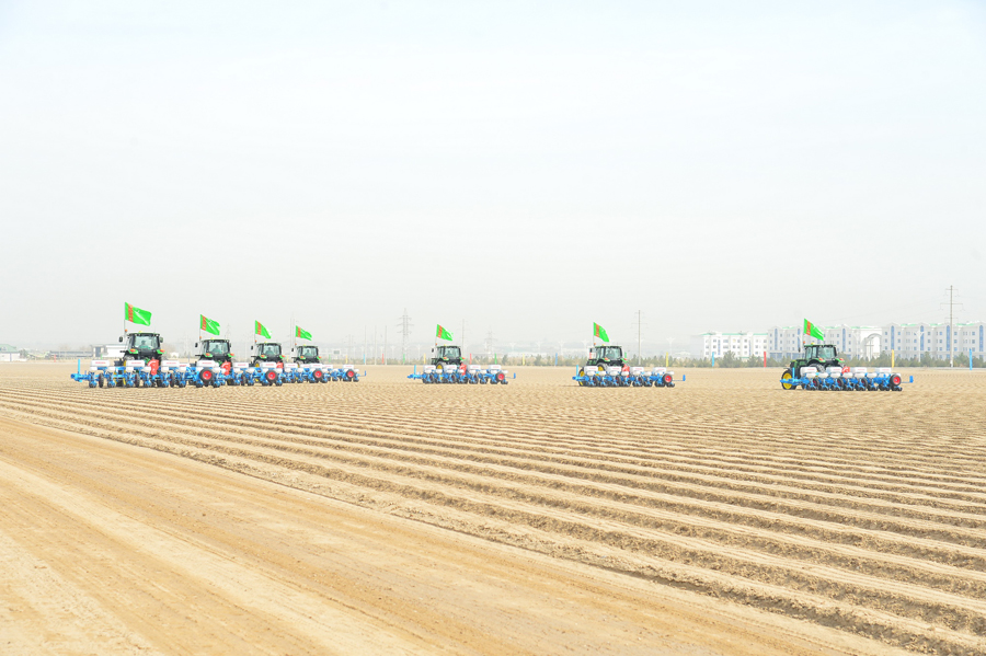 According to the established tradition, the start of sowing was blessed by honorable elders. After praying to the Almighty for the well-being and prosperity of the Motherland, the Turkmen people and the country's leader, they planted the first cotton seeds in the ground and then made way for mechanization.