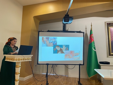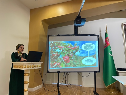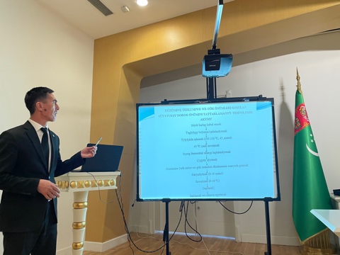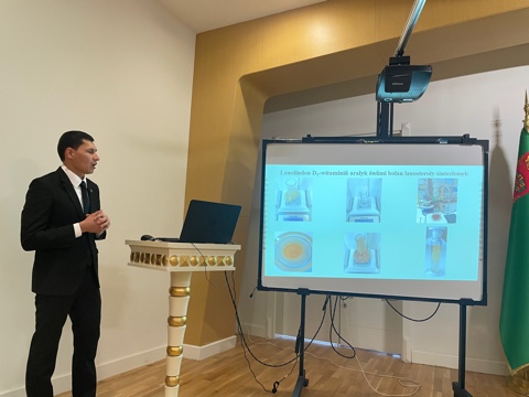 Scientists and specialists from various institutions of the country participated in the comprehensive exploration of the seminar's theme. The presentation by Doctor of Biological Sciences S. K. Durdyev from the National Institute of Education of Turkmenistan was dedicated to the topic "Valuable Information about Health and Healthy Lifestyle in the Literary Heritage of Magtymguly Fragi." E. Babanazarov, a senior lecturer of the S.A. Niyazov Turkmen Agricultural University, spoke about the improvement of technology for the production of fermented milk curd products, while his university colleague Y. Sh. Saryev, presented an enhanced technology of making melon jam. B. Mukhyeva, representing the Center for Public Health and Nutrition of the State Sanitary and Epidemiological Service of the Ministry of Health and Medical Industry of Turkmenistan, discussed the work being done on the control of trans-isomeric fats in food products.