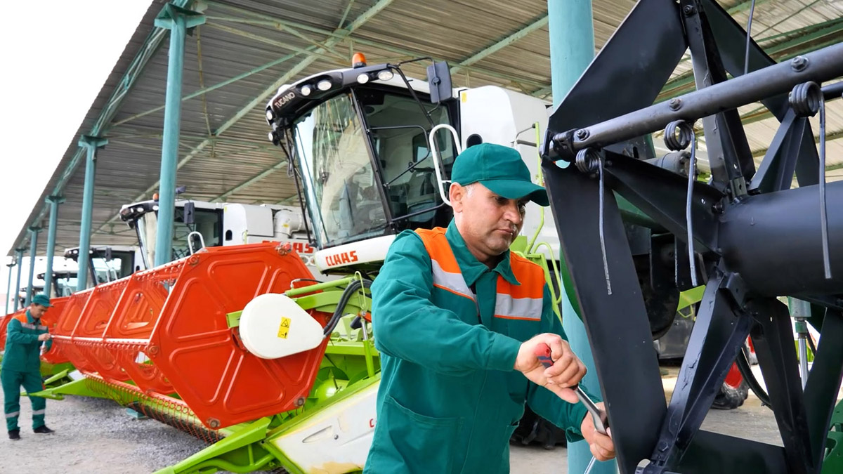Mechanics, engineers and technicians of the "Balkanobahyzmat" Production Association are working at an unrelenting pace to prepare for the harvest. All combine harvesters are ready for the upcoming important season. For instance, in Gyzylarbat and Bereket etraps, 102 combine harvesters of "CLAAS" and "John Deere" type were fully inspected and lined up for readiness.