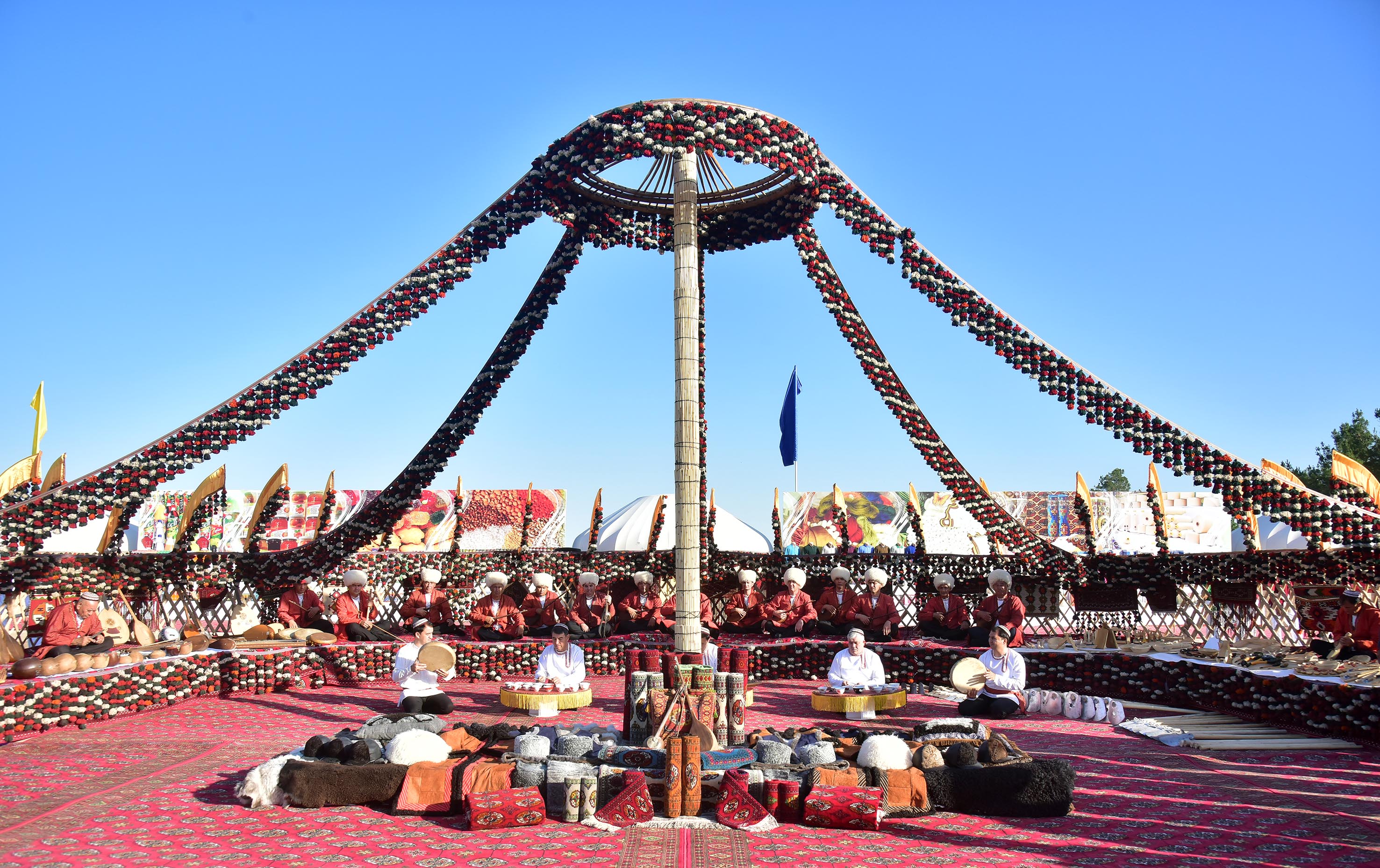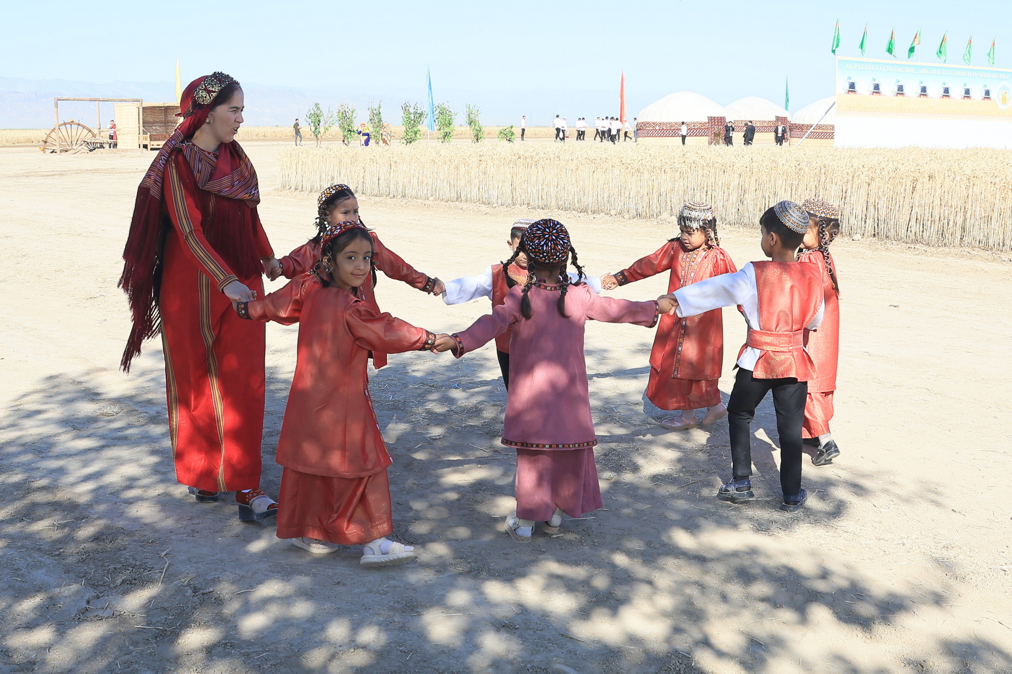 Exhibitions of agricultural production, bakery products, and modern agricultural machinery are organised on the occasion of the start of the grain harvesting season. Actors and folklore-choreographic ensembles of velayats prepared creative gifts for agriculturists.