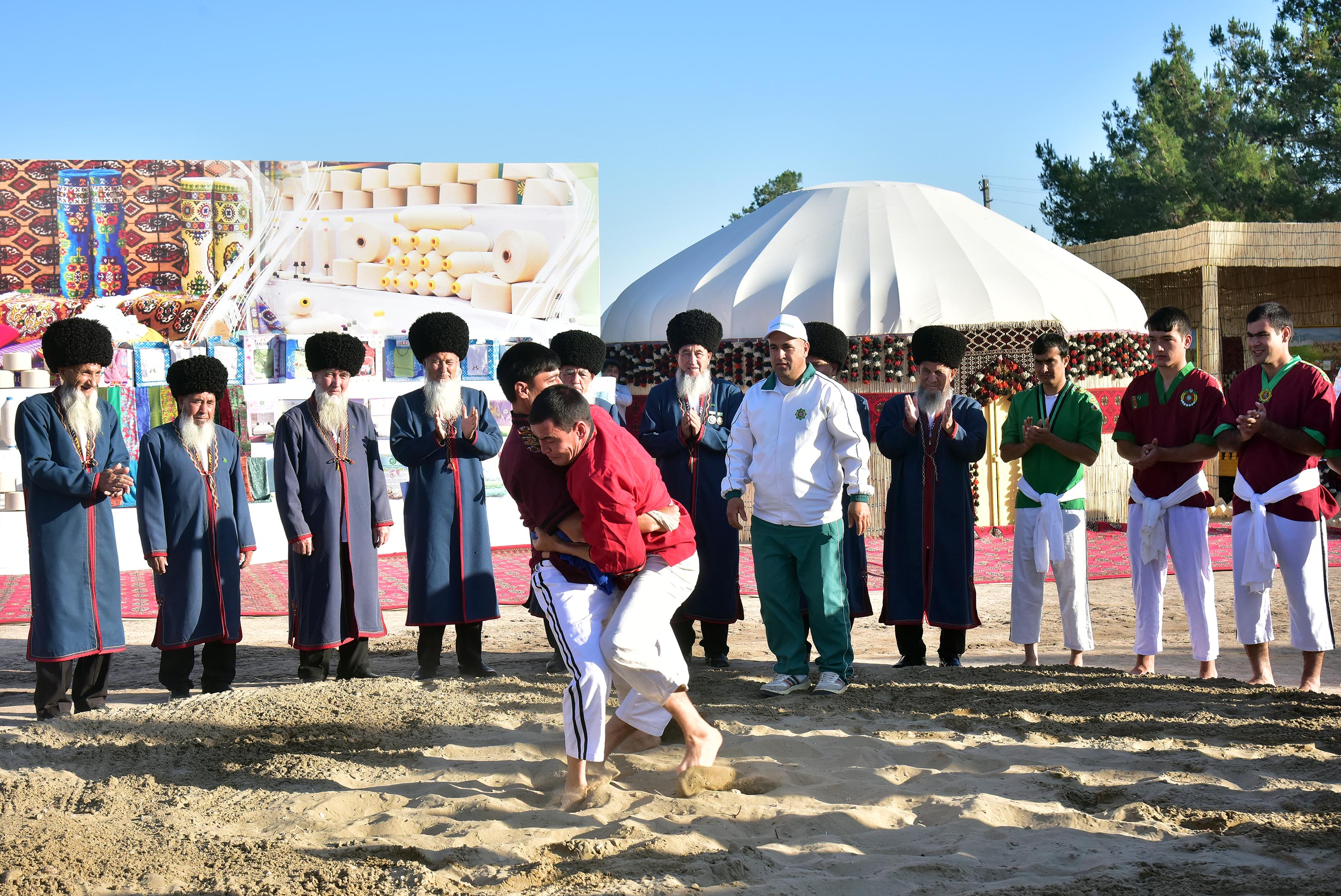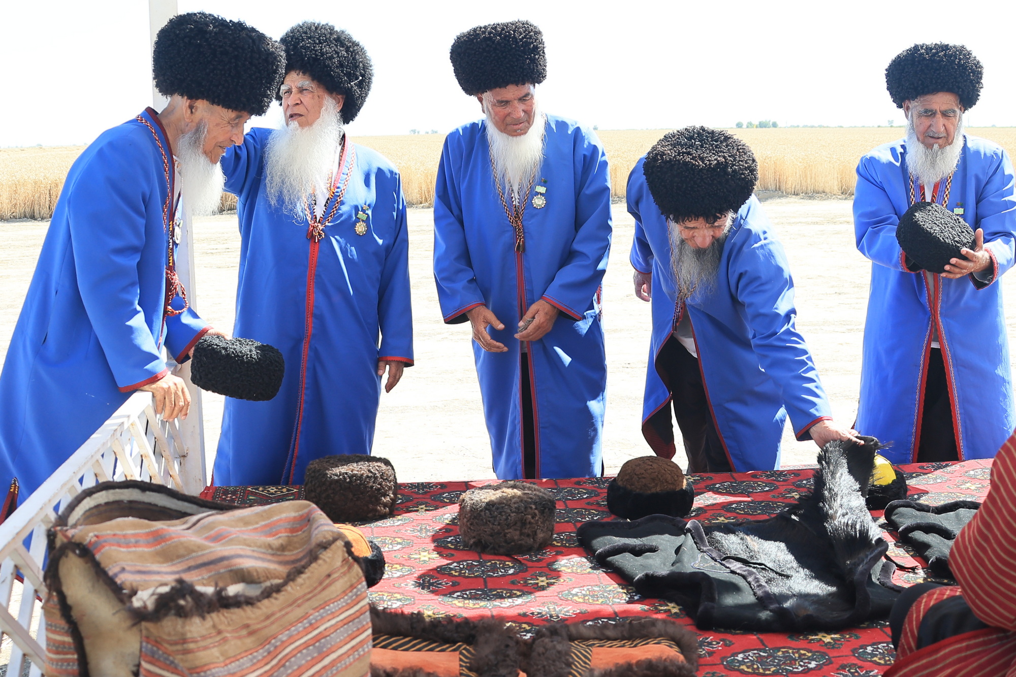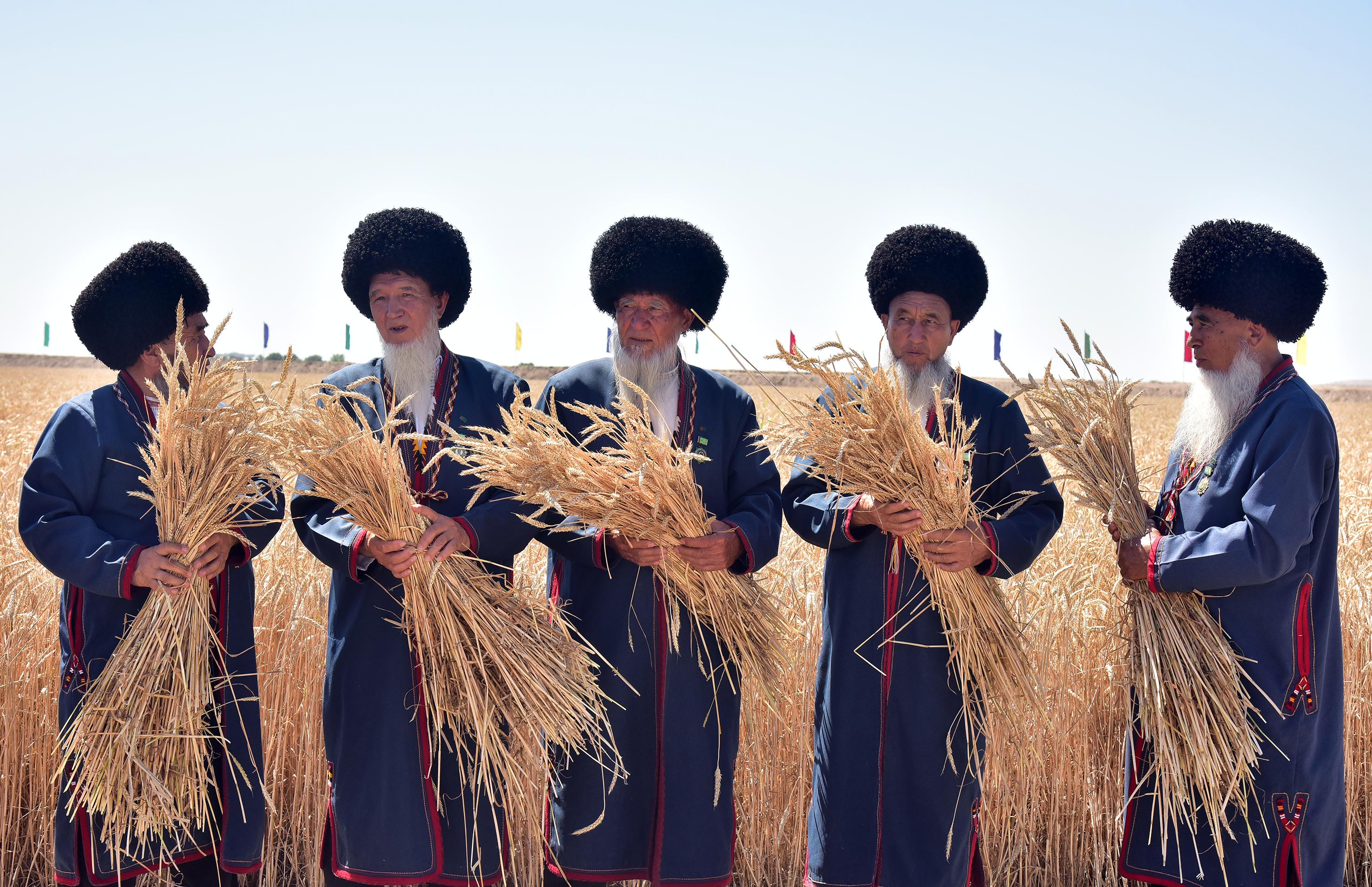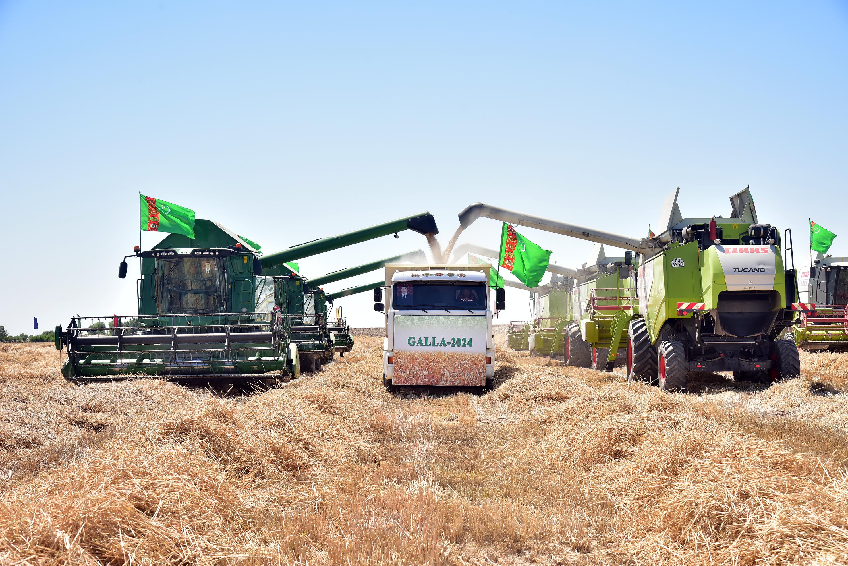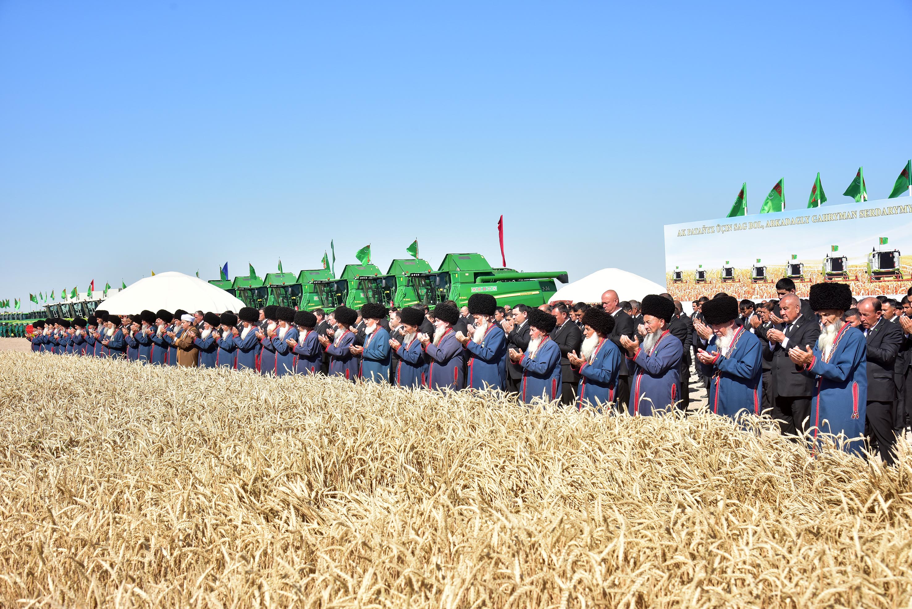 By a noble tradition, honoured elders gave their blessing to the grain harvesting in places, having prayed the Almighty for well-being and prosperity of our fatherland and all Turkmen people. Having cut the first wheatears with words «Çäjiňe bereket! » («Have a good harvest! »), aksakals gave way to combine operators.