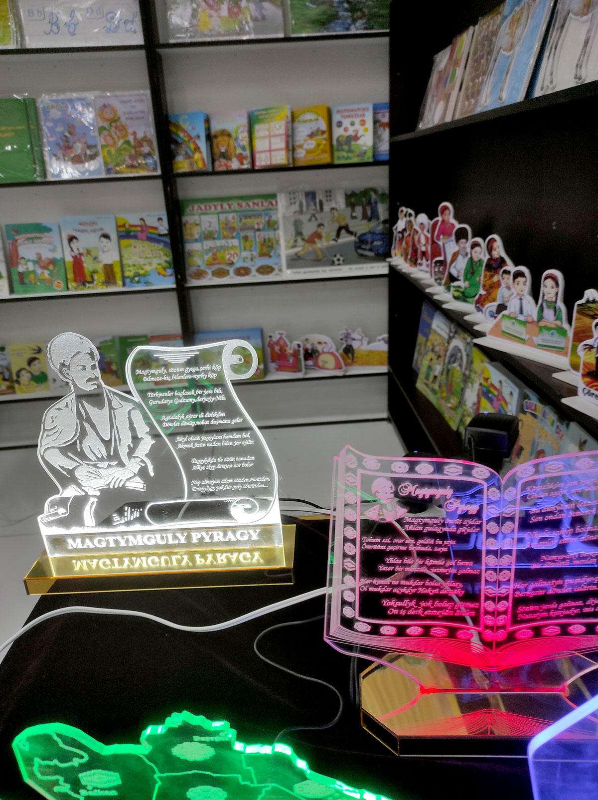 The works of creative artists at "Kids Expo: Everything for Children" also reflect the theme of the year dedicated to the 300th anniversary of the classic poet Magtymguly Fragi. Visitors are drawn to unique glass artworks depicting the image and poems of the great poet and thinker.