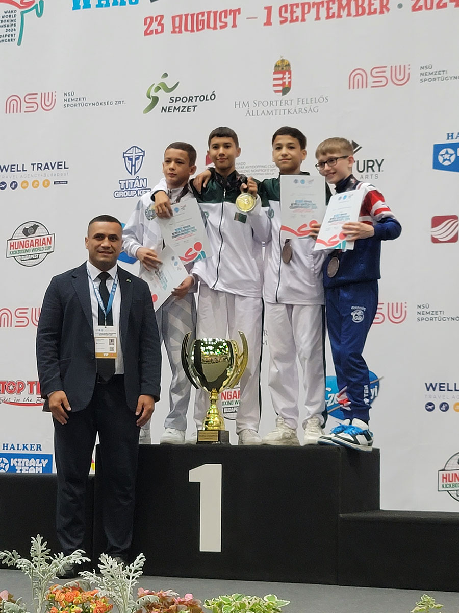 Jasurbeg Ahmedov won the gold medal in our team. In the «kick-light» section of the up to 37 kg weight category, he won four victories and rose to the top step of the podium.