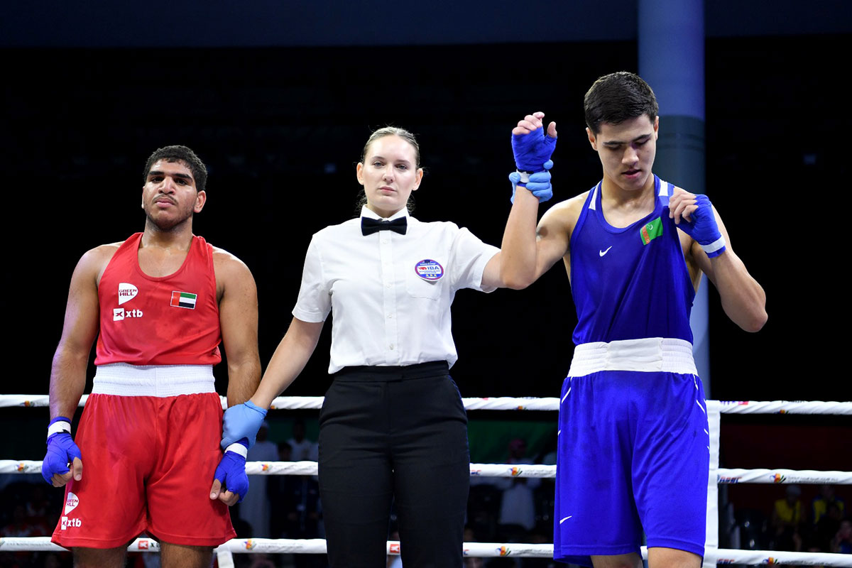 Begench beat Siva Chainarong (Thailand) – 3:2 by judge’s split decision in a tense 1/8 final match. Judges from Sri Lanka, the UAE and Kyrgyzstan awarded the victory to the Turkmen boxer with a minimal margin of 28:27, while judges from Tajikistan and Serbia gave the same score to the Thai athlete.