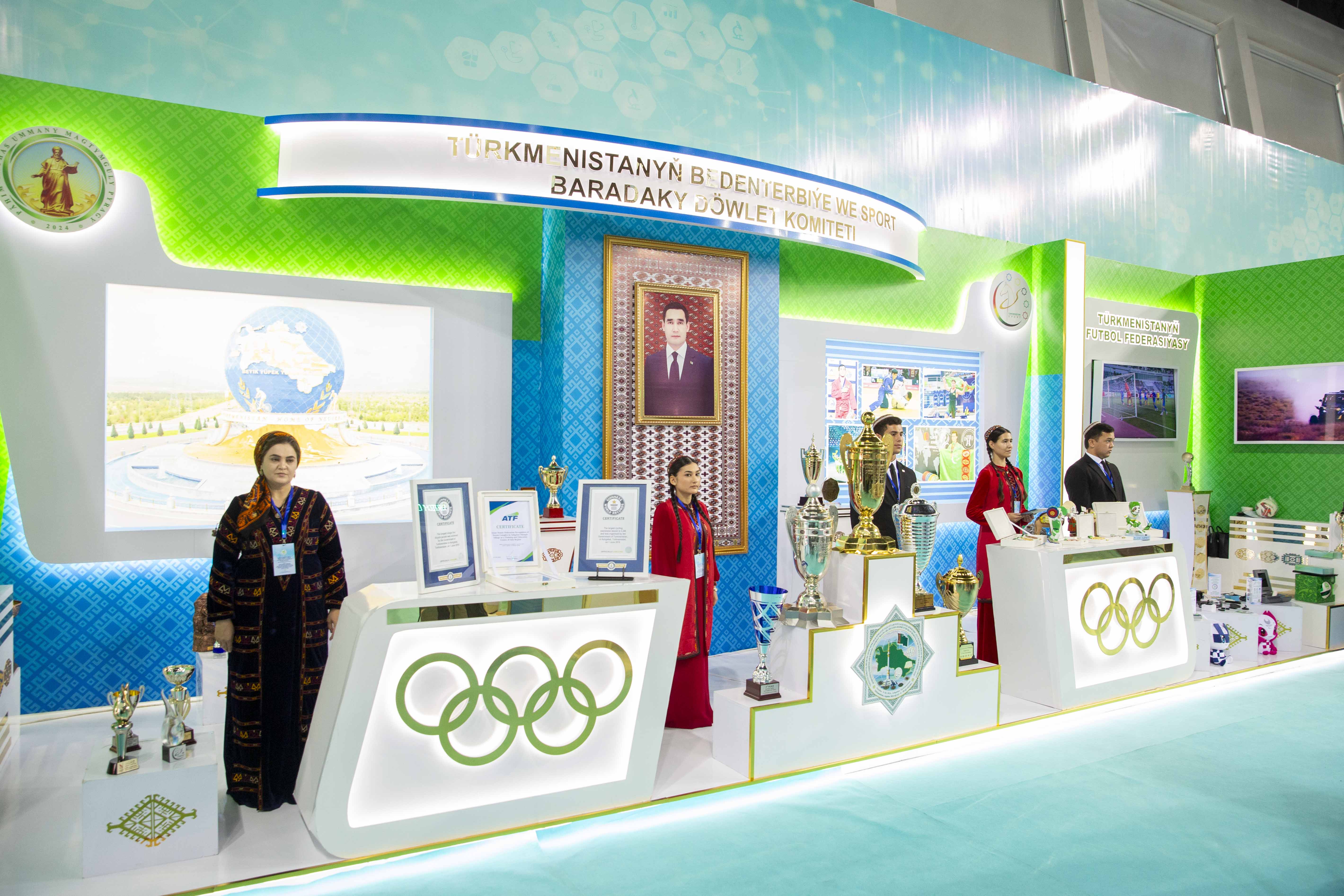 Today, the ceremonial opening of the international exhibition "Healthcare, Education and Sports in the Era of Revival of the New Epoch of the Powerful State" took place in the training halls of the Martial Arts Sports Complex at the Olympic Village Department of the Khakimlik in Ashgabat. The event is timed to coincide with the widely celebrated the Day of Workers of Healthcare and Medical Industry of Turkmenistan.