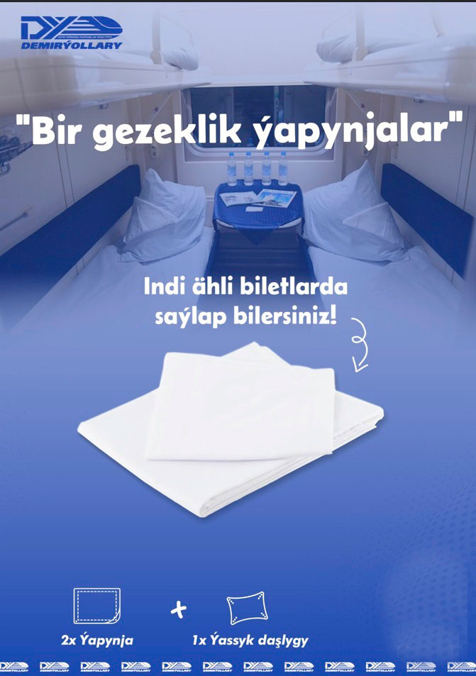 Now, when purchasing train tickets, passengers can easily add disposable sheets to their order both at ticket counters and terminals at stations, as well as online through the "Turkmenistan Railways" mobile app. The cost of the sheets will be added to the total ticket price, simplifying the purchase process.