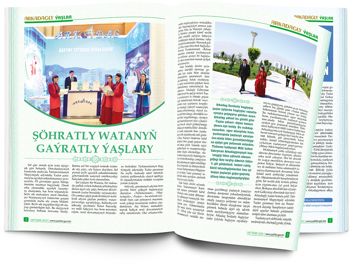 The pleasant design and eye-catching photographs enhance the impression from this issue of Arkadagly Ýaşlar eMagazine. The issue can be downloaded from the website www.turkmenmetbugat.gov.tm and via its mobile app.