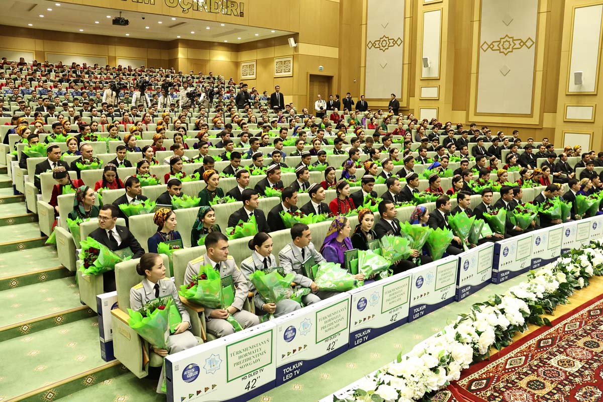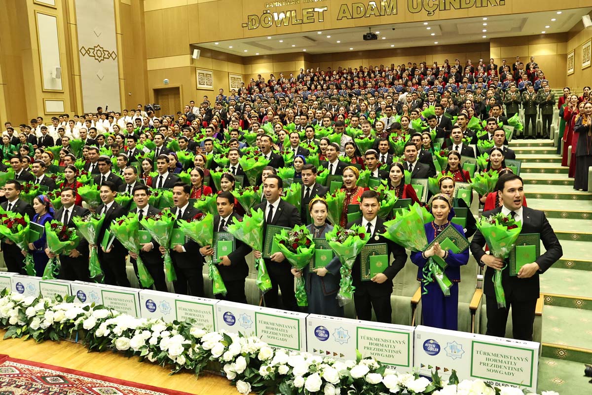 This year, 506 young people were nominated by ministries and departments, universities of the country, the cities of Ashgabat and Arkadag, velayats to receive the Youth Prize of Turkmenistan, 135 of whom were selected. These are young university lecturers, students and schoolchildren, representatives of creative teams, journalists, young specialists working in various ministries, departments and enterprises. The laureates of the Youth Prize of Turkmenistan were solemnly presented with the book "Magtymguly", published for the 300th anniversary of the great poet and thinker of the East, relevant certificates, valuable gifts and bunches of flowers. The full list of new winners of the Youth Prize of Turkmenistan is published on the website https://yashlar.gov.tm/item/10660 of the Magtymguly Youth Organization.