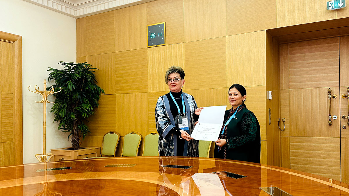At the end of the event, Sahra Amanova, a representative of WiLAT Turkmenistan, was awarded a certificate of membership in the Chartered Institute of Transport and Logistics CILT (UK). WiLAT (Women in Logistics and Transport) is a division of CILT that aims to advance the status of women in the field. The organisation focuses on supporting career development for women in transport and logistics.