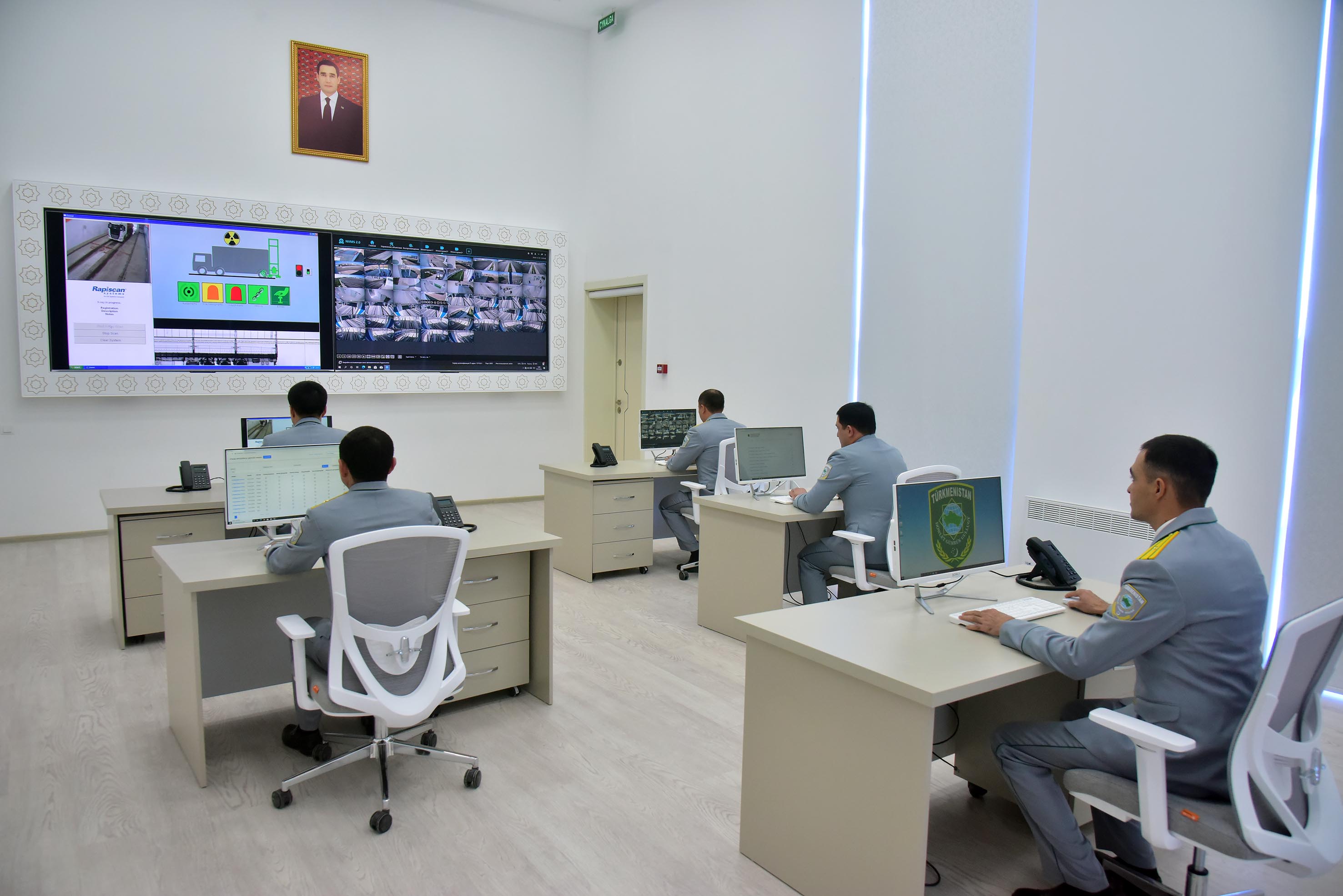 The "Farap awtoýollary" customs post meets international standards and is equipped with all necessary digital capabilities for effective and prompt customs inspection and cargo clearance. The digital system significantly simplifies and accelerates customs procedures, including control of cargo vehicles and citizen entry-exit. After vehicles leave the customs post, they continue to be monitored until they reach their destination. The customs post operates around the clock, with a modern night lighting system ensuring safe conditions for inspections at any time of day, adding an additional decorative element to the environment.