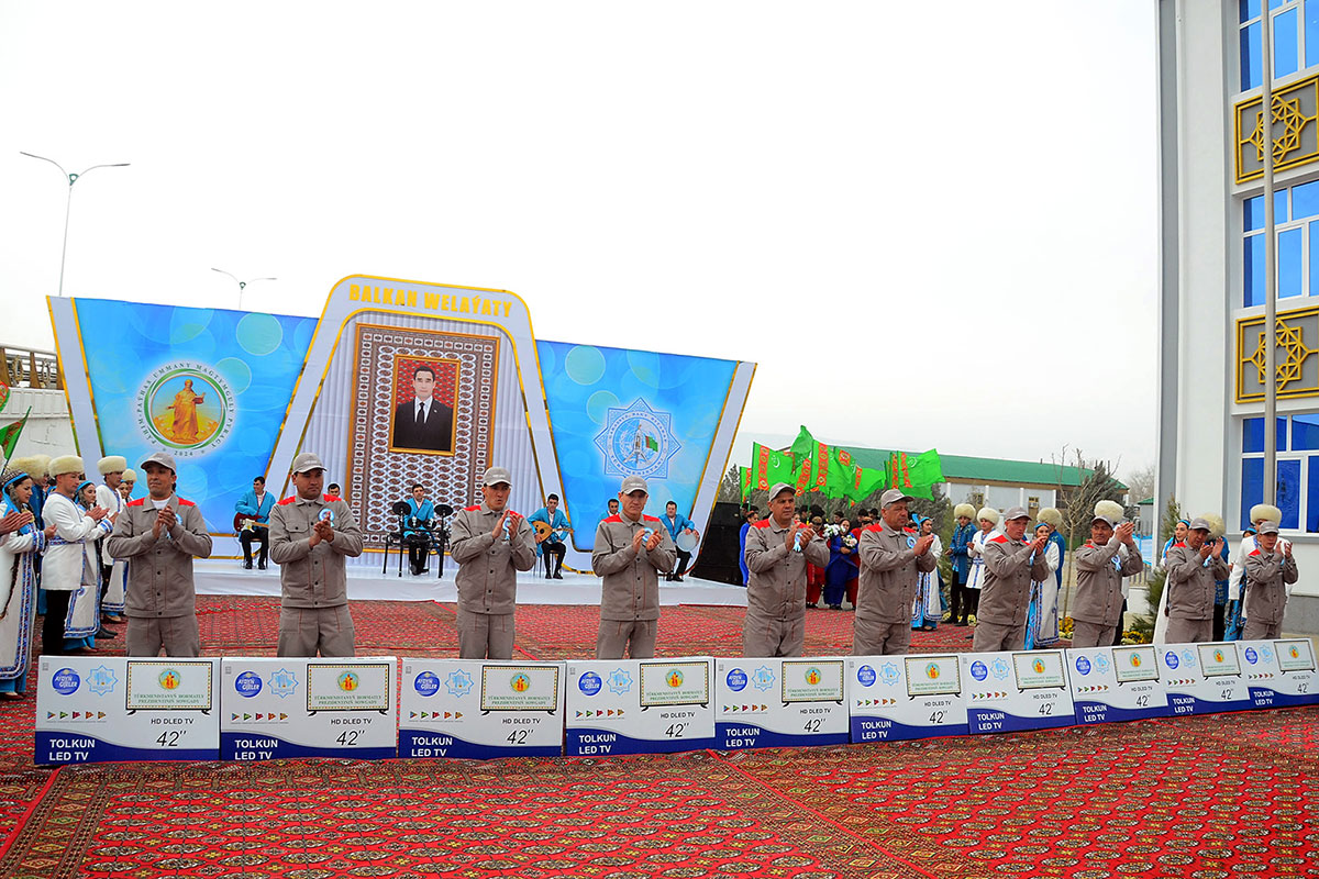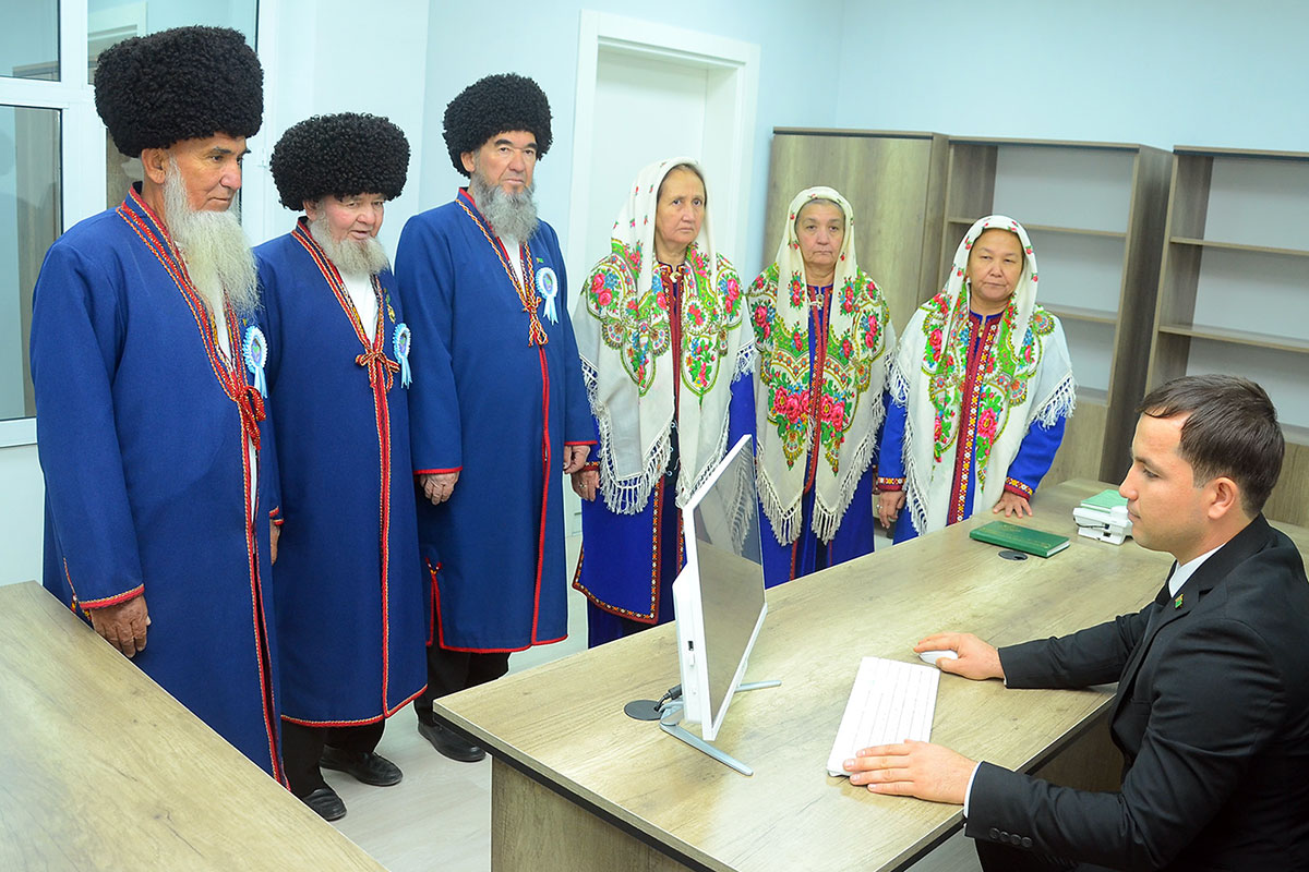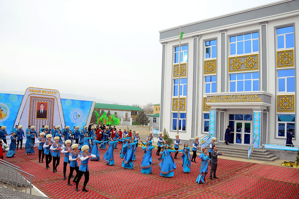 One of these events was organized on the occasion of the opening of a modern building of the Pension Fund department of the Ministry of Labor and Social Protection of Turkmenistan in the Kizilarbat etrap of the Balkan Velayat. It was attended by representatives of the Halk Maslahaty, deputies of the Mejlis, representatives of public organizations, builders, honorary elders and youth.