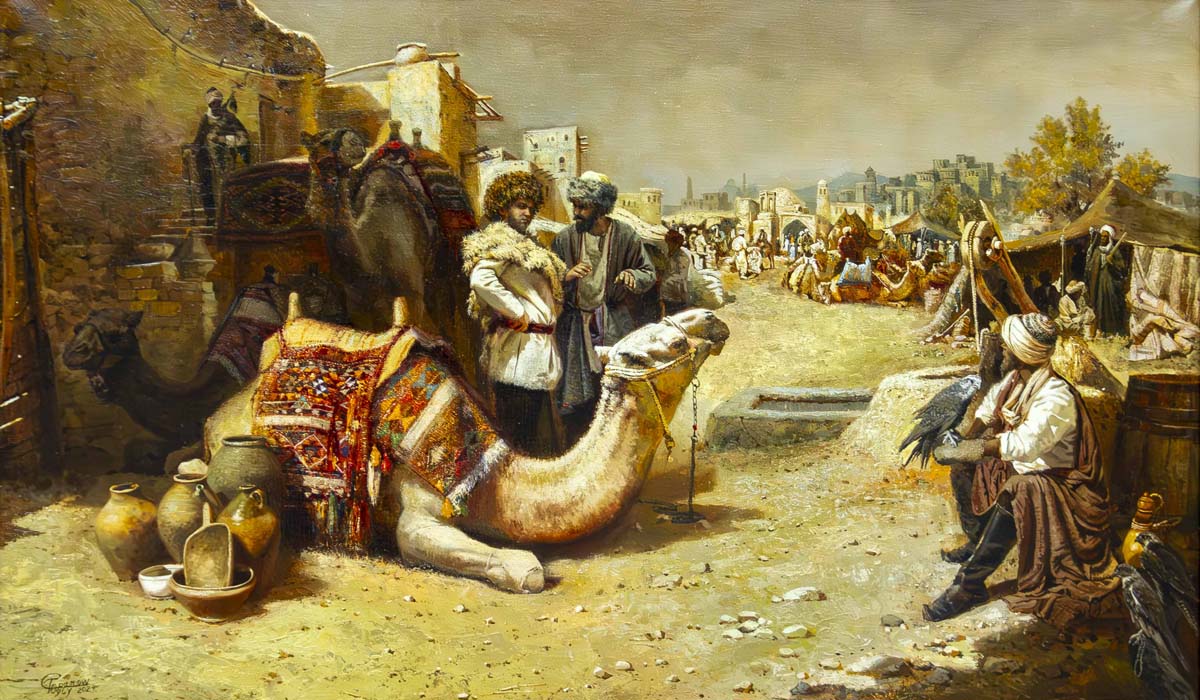 Two works on historical themes were presented by Toyli Chopanov - "Merv" and "Caravanserai". The paintings brought to life ancient architecture, a bustling oriental bazaar, merchants, traders, and visitors.