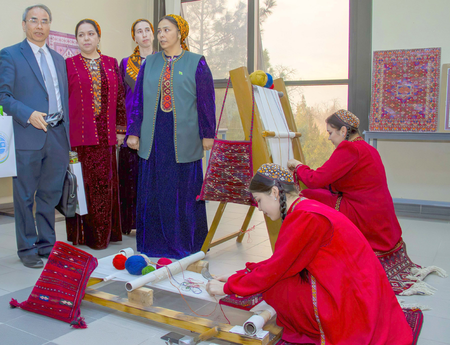 At the end of their visit, the guests also toured classrooms where young specialists are trained in ceramics, carpet weaving, and tapestry-making.