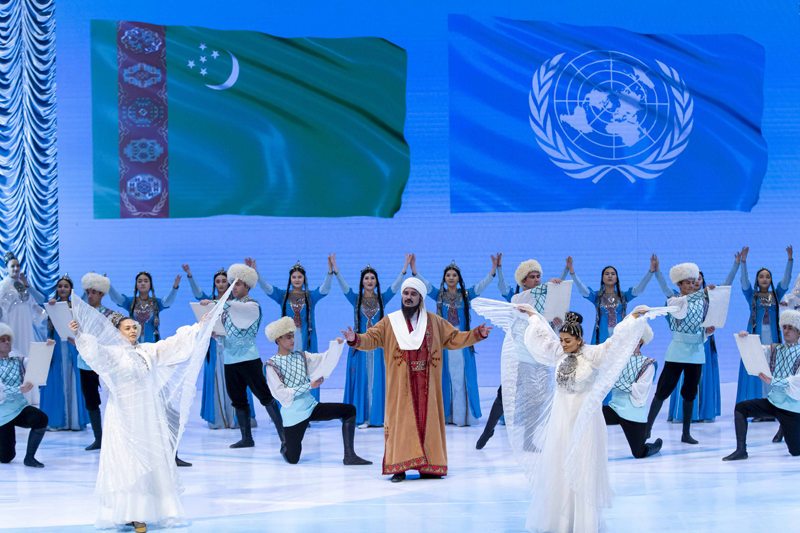 The most impressive of the dance and poetic compositions was  the "Parahatçylyk sazy dost doganlyk mukamy", which was performed by the actors of the Main Academic Drama Theater. The composition includes performances by Oguzkhan and Makhtumkuli Fragi.