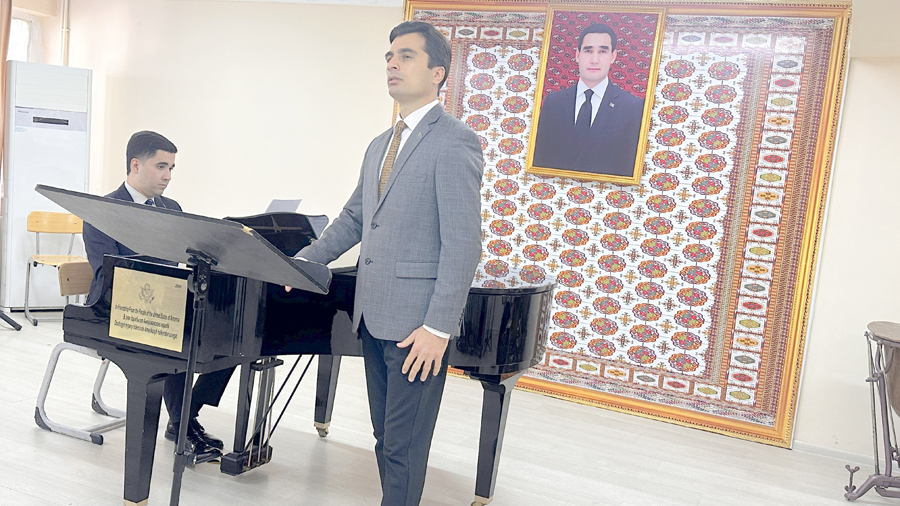 The host of the event, teacher Lachin Geldieva, conducted a dialogue with Mammetsapar Toyliev, asking questions about his biography and the process of becoming a composer. The conversation was smoothly replaced by musical numbers.