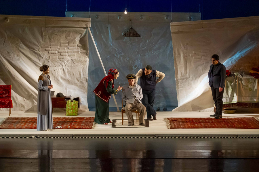 The directors of this touching drama are Batyr Bekmyradov and Aynazar Batyrov, both Honored Workers of Culture of Turkmenistan. Batyr Bekmyradov is also the author of the magnificent scenography, whose allegory contributed to fully revealing the theme of the play.