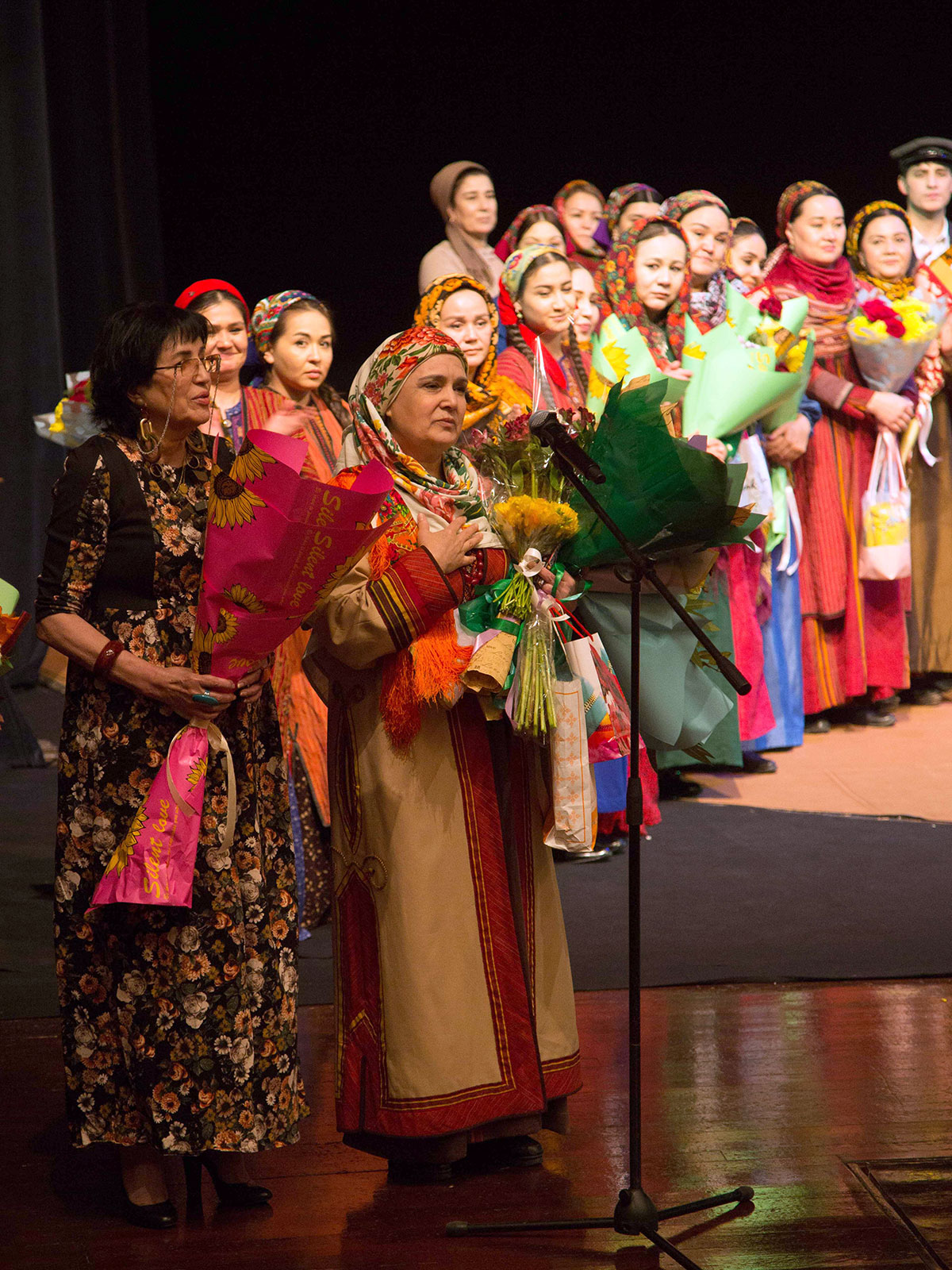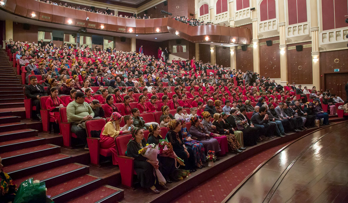 At the conclusion of the performance, Sabyr Atayeva's daughter and granddaughter came onto the stage to thank all participants and audience members for cherishing the memory of their beloved family member. Following this, a large screen appeared on stage, displaying fragments from the life of this outstanding woman of the Turkmen people. These moments were accompanied by singing from Turkmenistan’s Golden Bass and Honored Artist Tirkesh Matnazarov.