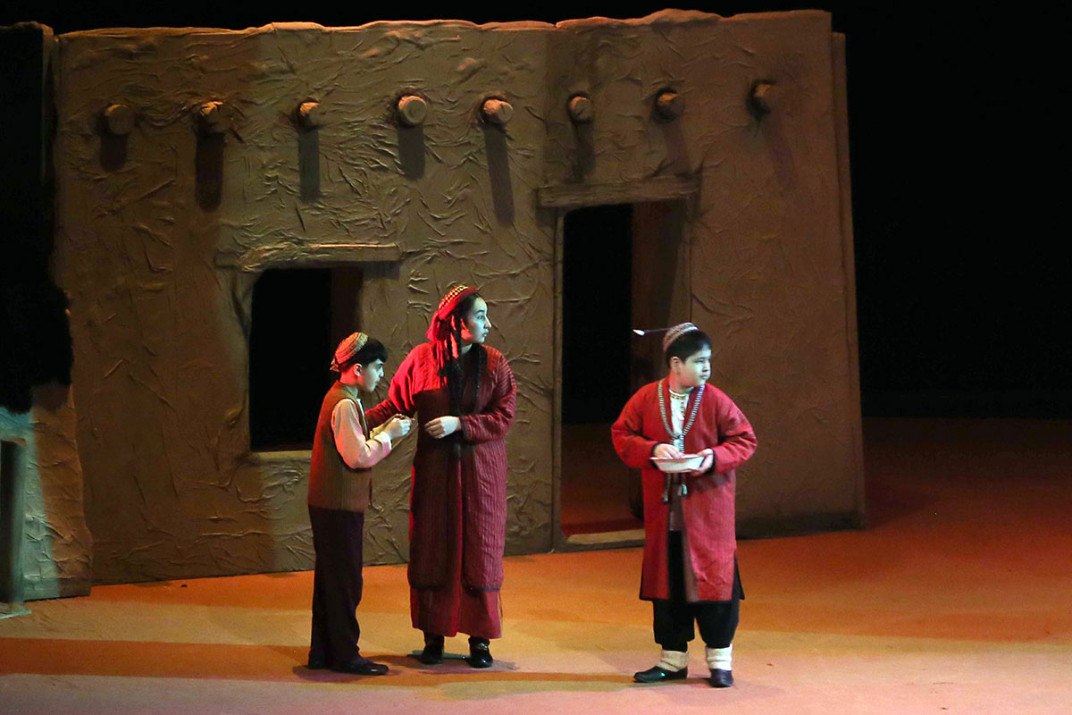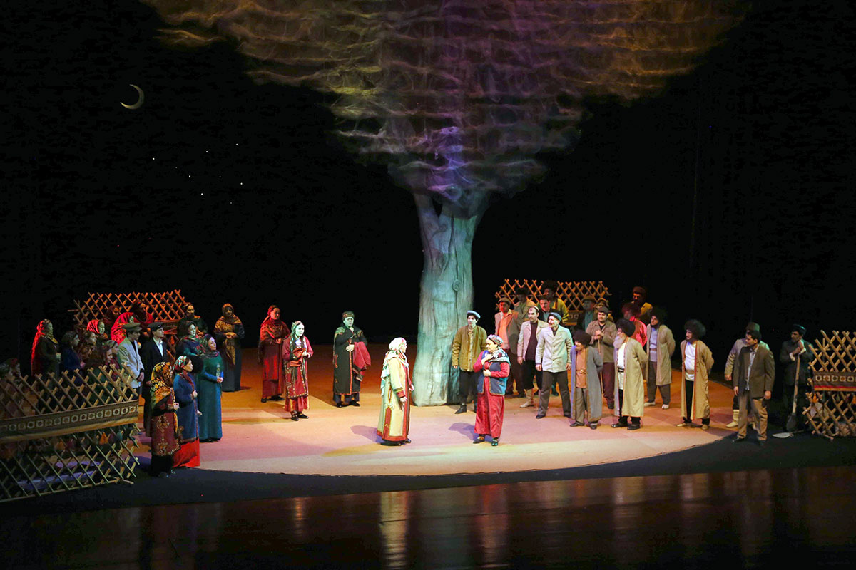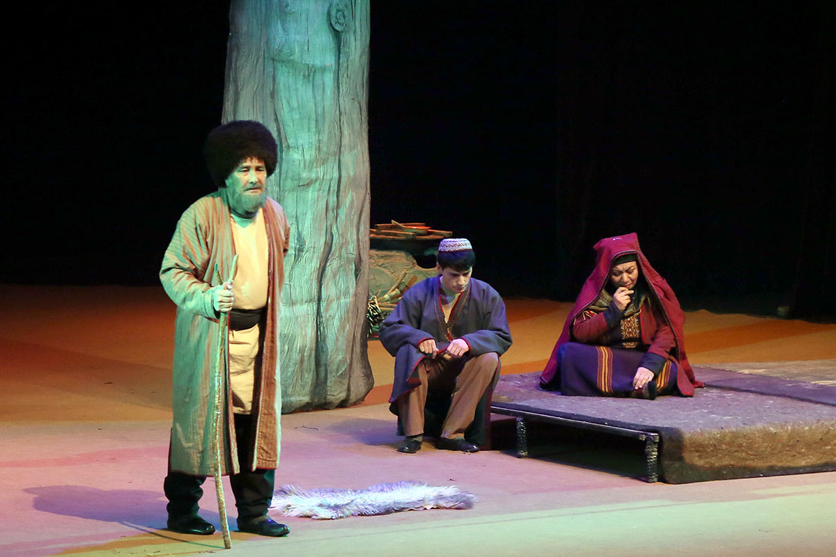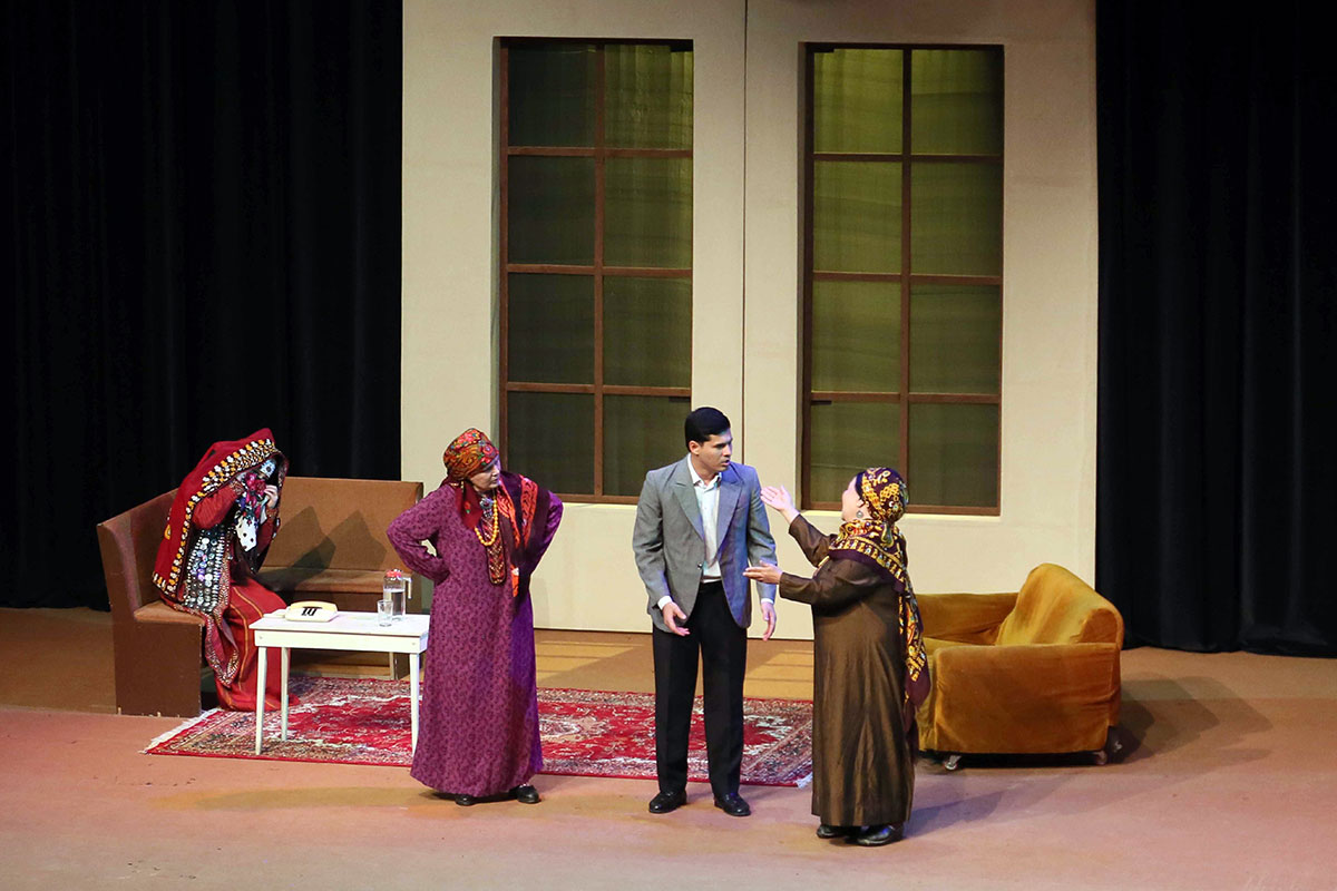 Notably, almost all actors are involved in this production, which essentially represents a "theater within a theater." Set designer Mekan Annamyradov created expressive stage designs for all of the play's scenes.