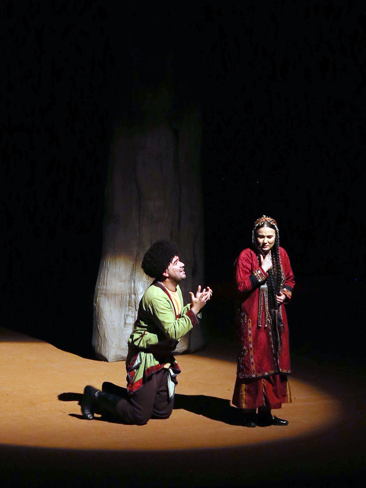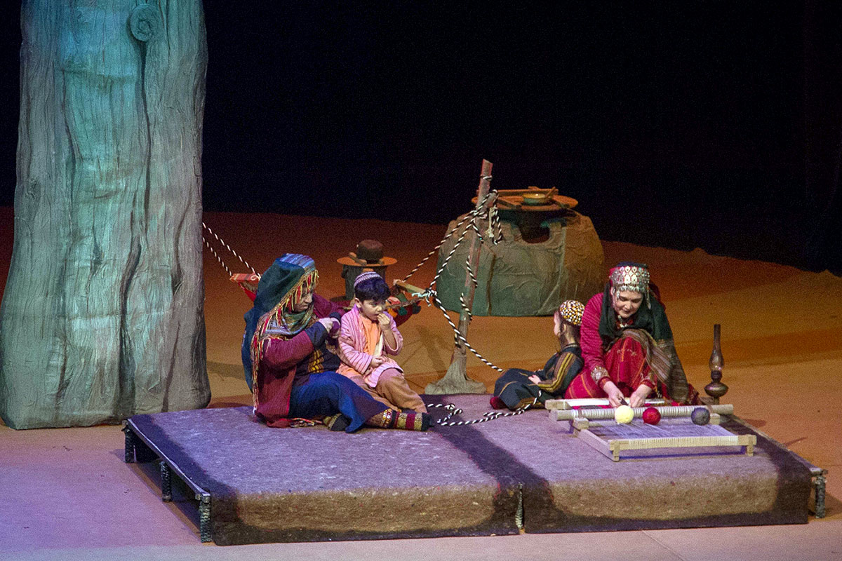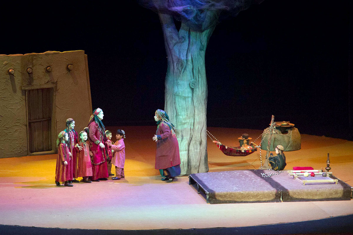 Notably, almost all actors are involved in this production, which essentially represents a "theater within a theater." Set designer Mekan Annamyradov created expressive stage designs for all of the play's scenes.