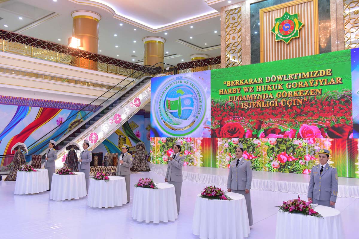 In the nomination “For work on strengthening the country’s defense and the rule of law in society,” the best was psychologist of military unit No. 20020 in Ashgabat, Aygozel Annamyradova.
