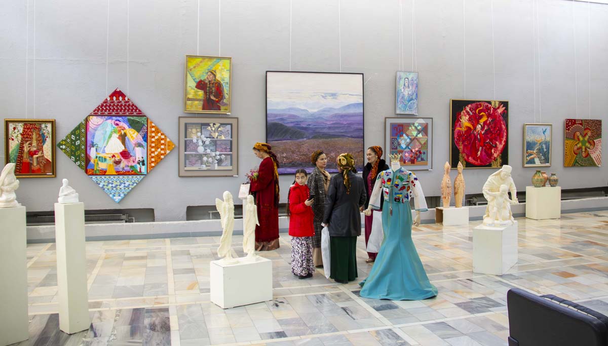 There is a tradition of organizing exhibitions around International Women's Day on March 8 at the Exhibition Center of the Ministry of Culture of Turkmenistan, where only women showcase their works.