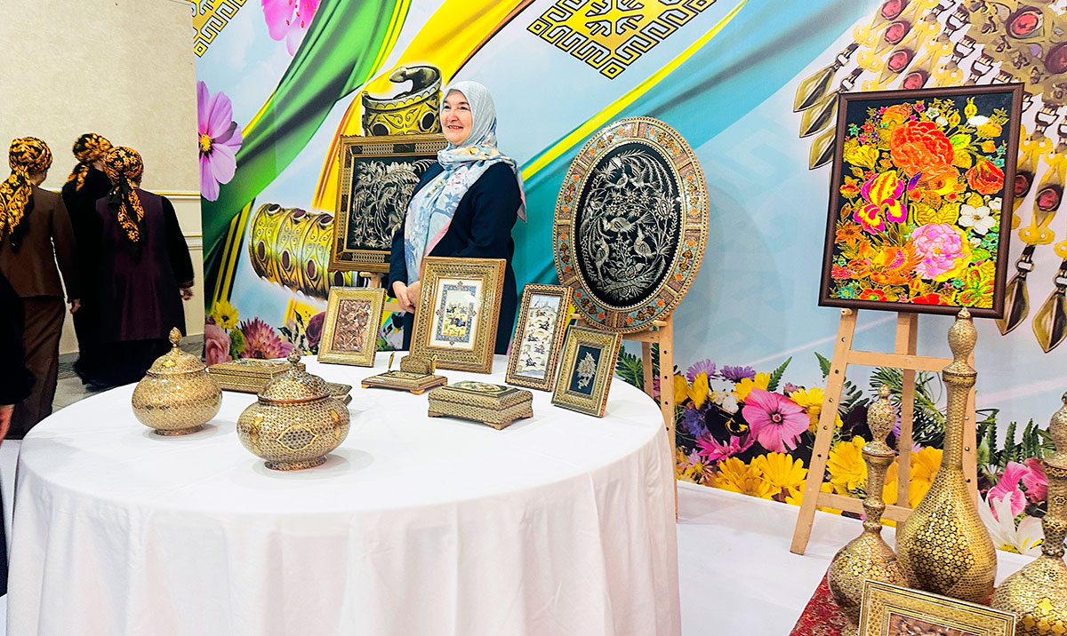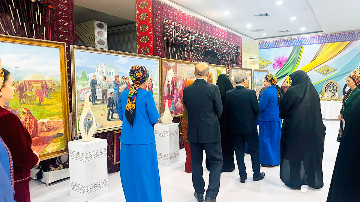 The event began with an inspection of the exhibition of folk crafts, which unfolded in the lobby of the Center for Public Organizations. World-famous Turkmen carpets, national costumes, textiles and art paintings telling about the life, customs and traditions of the Turkmen people were presented.