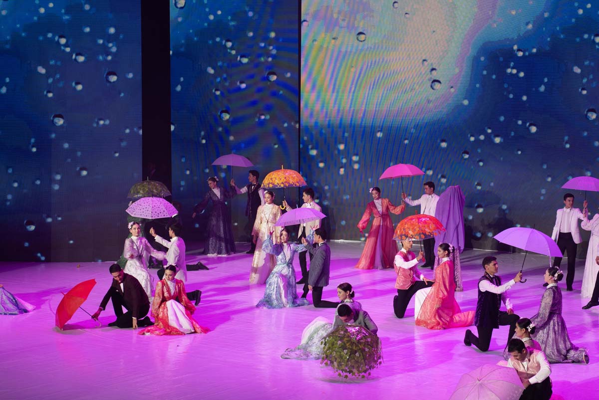 The musical compositions «Şanly günüň şanyna», «Arzuwly dünýäm», «Göresim gelýär», «Sen gerek», «Gizlenme, ýar!» and others, based on the poems of Turkmen poets, were enthusiastically received by the guests. The spirit and flavor of national traditions combined with modern realities were embodied on stage by the State Dance Ensemble of Turkmenistan and choreographic groups, including “Galkynyş”, “Aşgabat”, and “Laçyn”. In the language of dance, the artists conveyed their overwhelming love and gratitude for the woman. All performances were accompanied by a video.