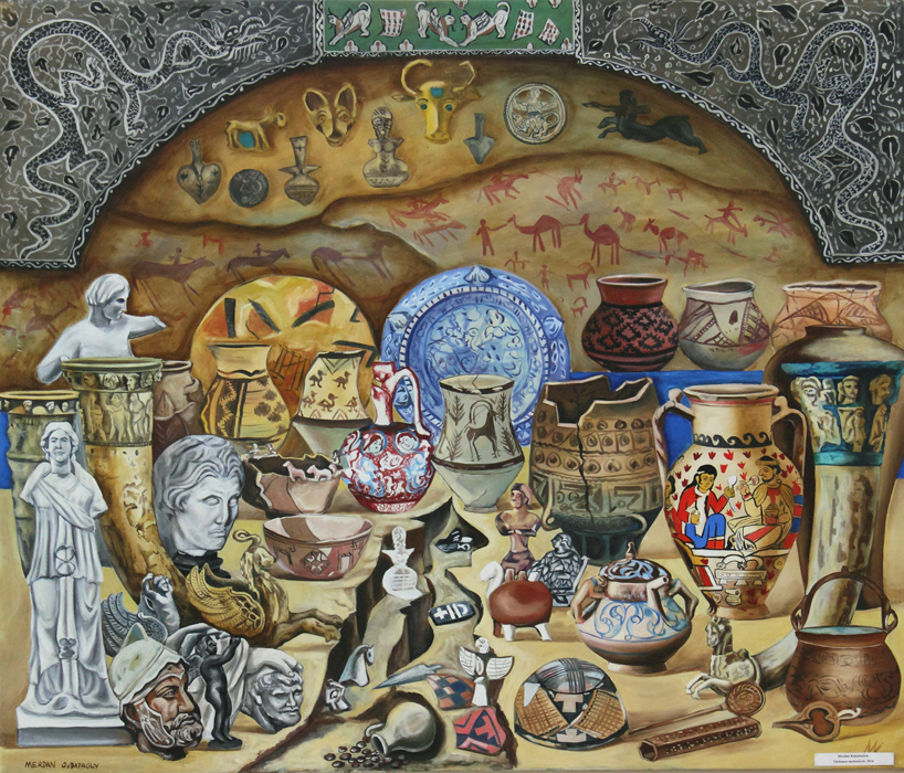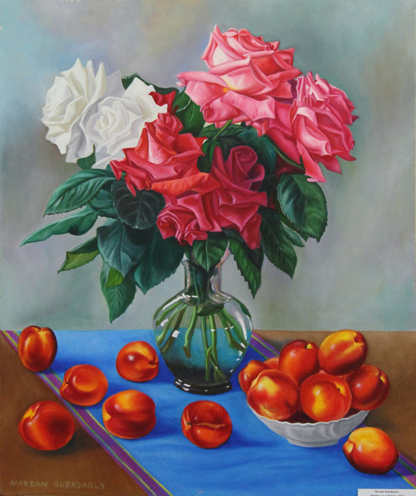 Merdan Babajanov can be classified as a realist: his works lack tension in forms. The objects in his paintings are clearly drawn without shadows and are colored in bright, pure colors.