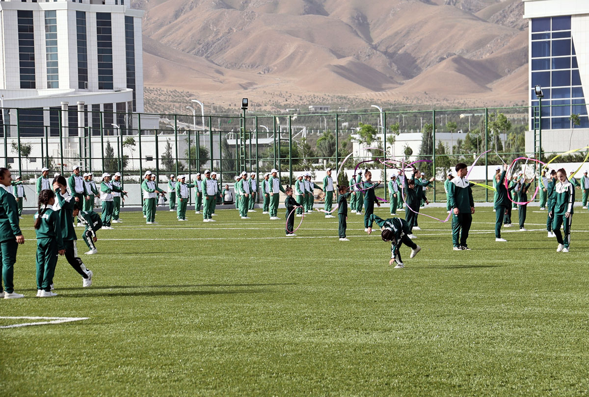 On completion of the entertainment, President Serdar Berdimuhamedov passes to the open arena and takes his seat at the specially designated place.
