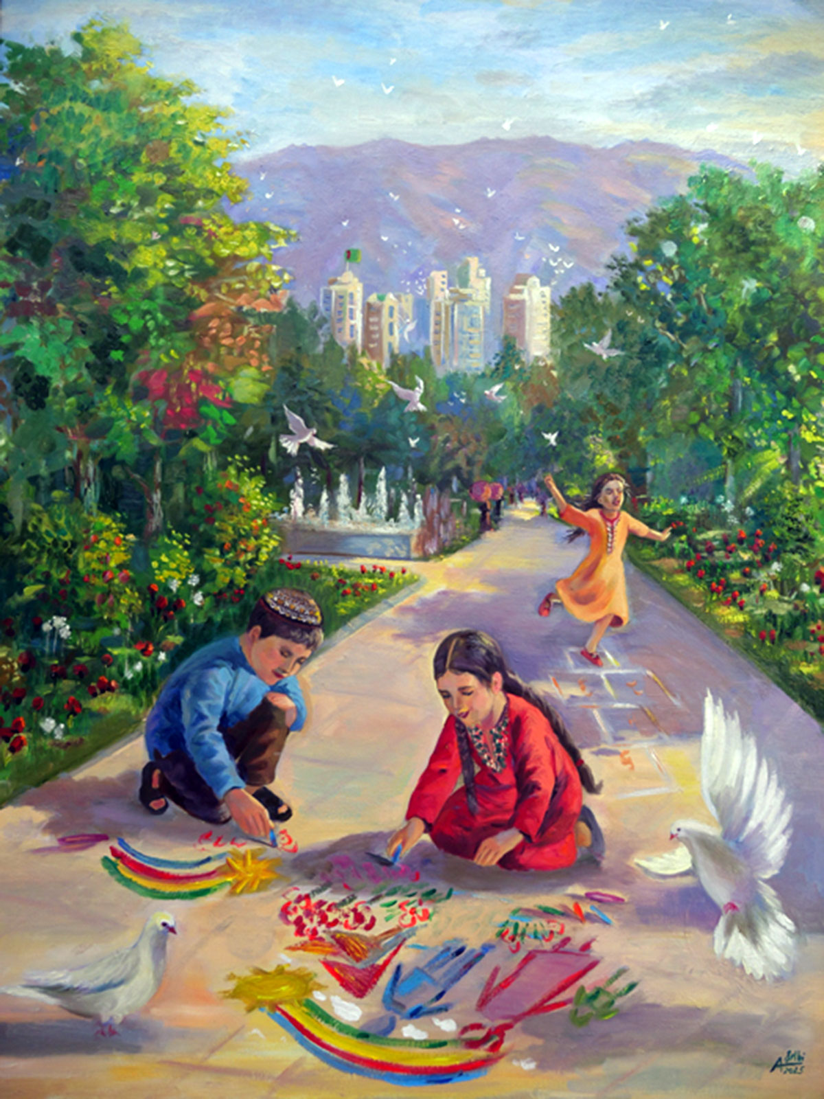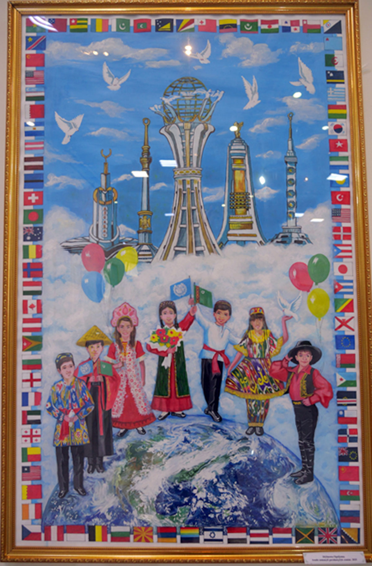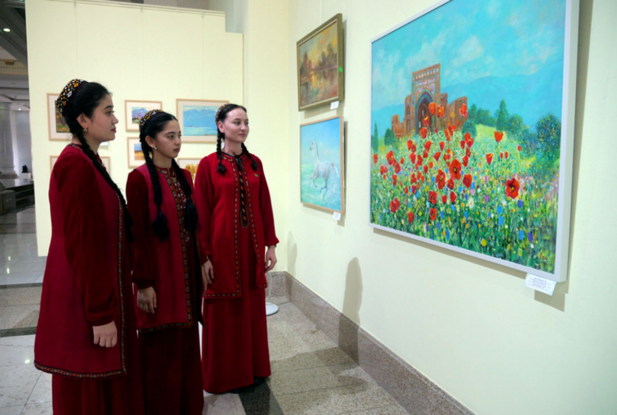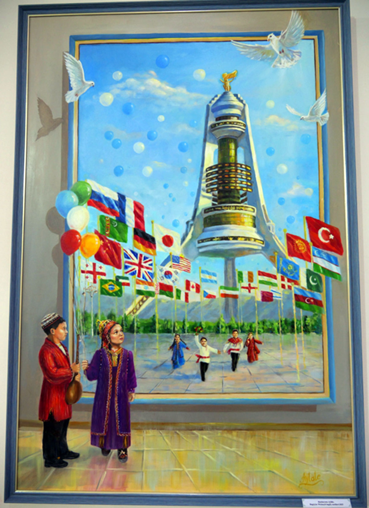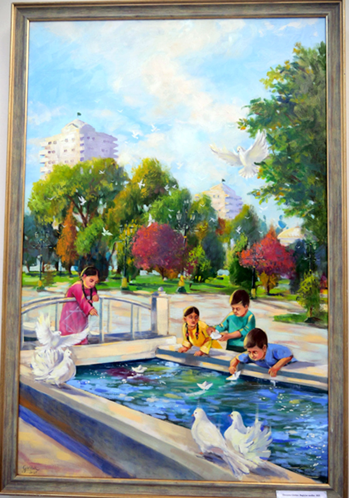 There are many interesting paintings at the exhibition, for example, «Dance of Friendship» by Ayna Atamyradova, «Music of Independence» by Merjen Kamiyeva, «Happy Childhood» by Ayzada Pirlekova and others.