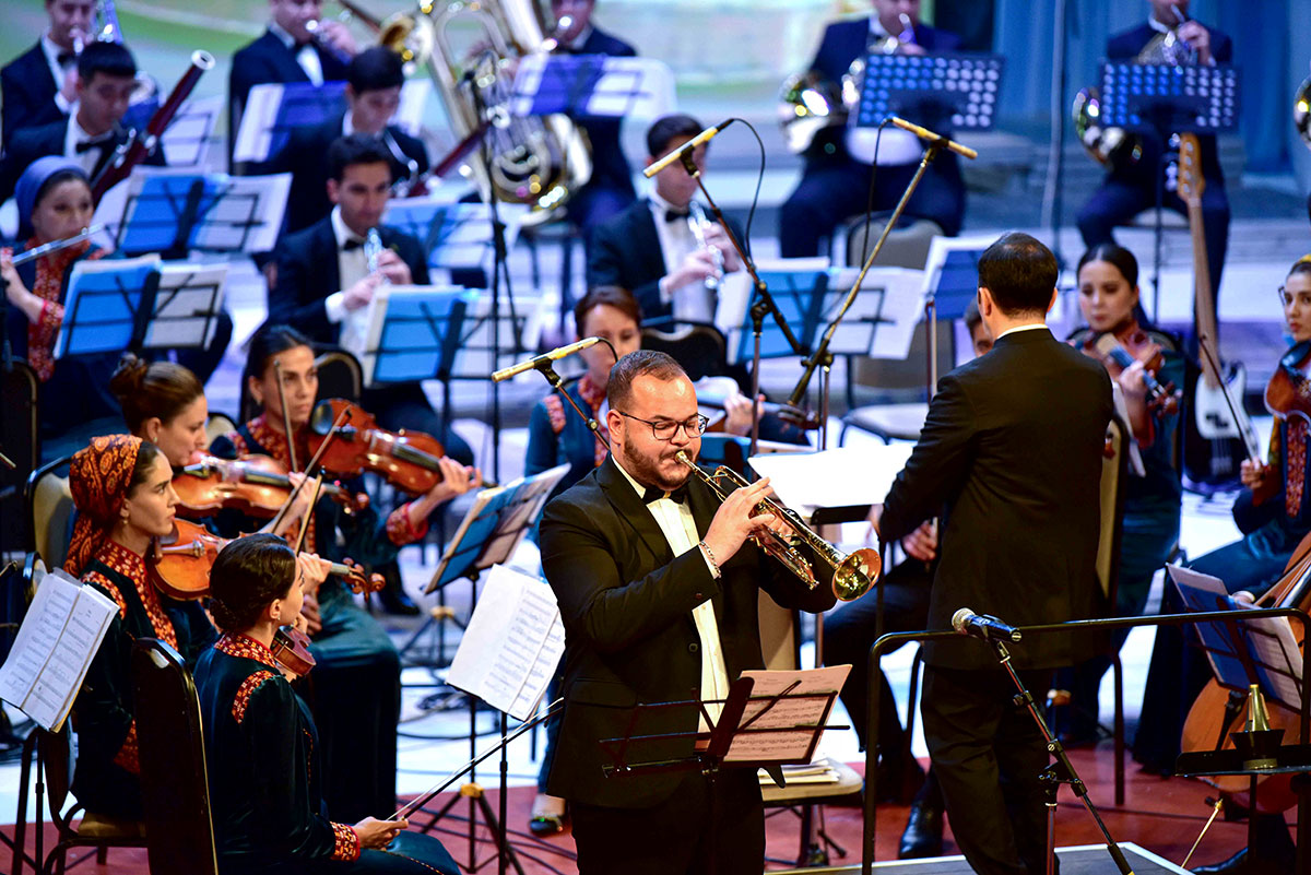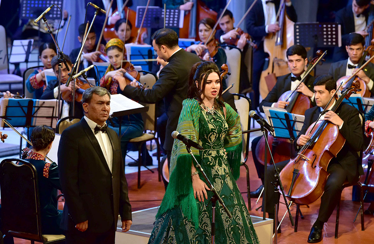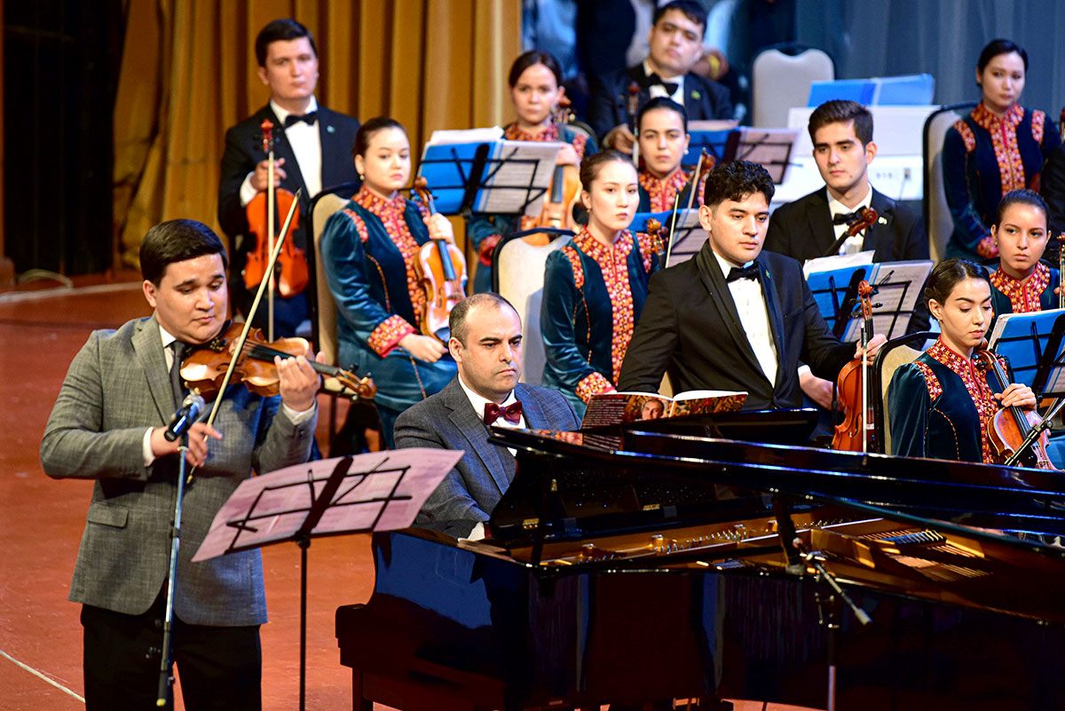 All participants of the festival dedicated their performances to the motto of the year of our country – "International Year of Peace and Trust", finding a response in their hearts. The "Music of the World" festival was opened by Rejep Rejepov's song "Turkmenistan" performed by the State Symphony Orchestra conducted by Rasul Klichev and soloist People's Artist of Turkmenistan Atageldi Garyagdiev. This patriotic piece was proudly performed, setting the tone and setting a high performance standard for other festival participants.