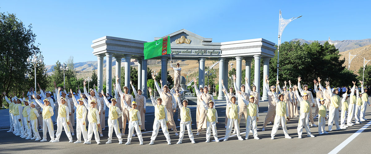 Everyone greets President Serdar Berdimuhamedov with great enthusiasm. Masters of the arts perform a song and music composition glorifying the Motherland, sports, a healthy lifestyle, and the current happy era.
