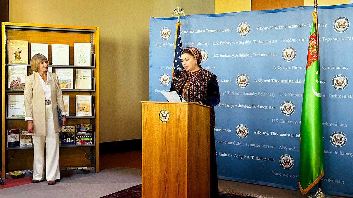 Then, the US Ambassador to Turkmenistan Elizabeth Rood addressed the audience with a welcoming speech. She emphasised the importance of the event dedicated to the International Year of Peace and Trust, as well as the US Independence Day. The Ambassador noted that reading books expands knowledge, develops thinking and inspires strong leaders and thoughtful citizens.