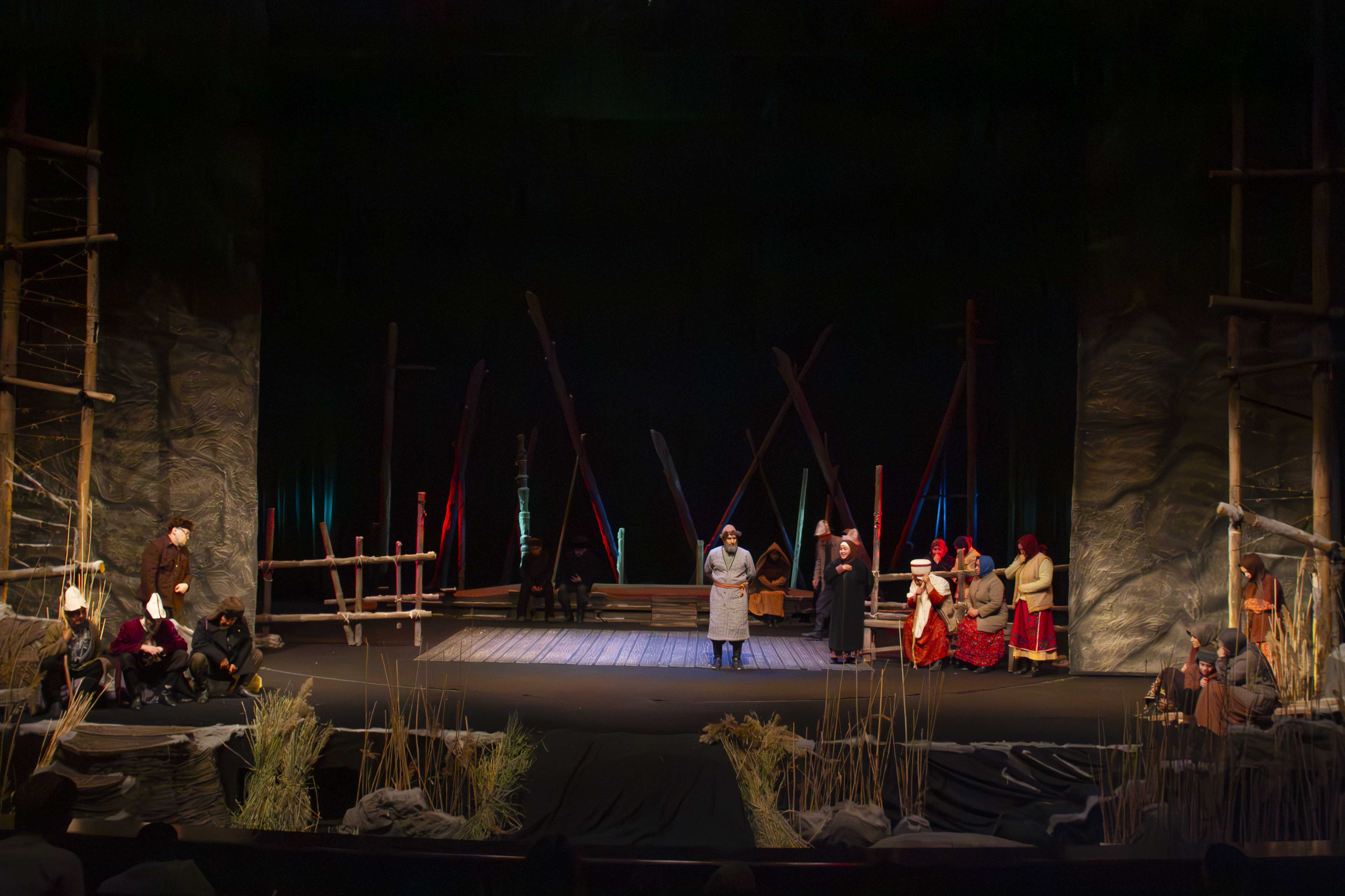 Falling snow accompanied almost all the play’s actions. The gloomy, cold weather intensified the drama's tension. Everything worked toward the result, first and foremost the casting: the role of the main heroine Seide is performed by Leyla Rustemova, Ismail by Sohbet Tachmammedov, Ismail’s mother by Honored Artist of Turkmenistan Syulgun Tashlieva, the neighbor by Honored Artist of Turkmenistan Gerek Hojamammedova, and Murzakul by Dowran Hojageldiyev.