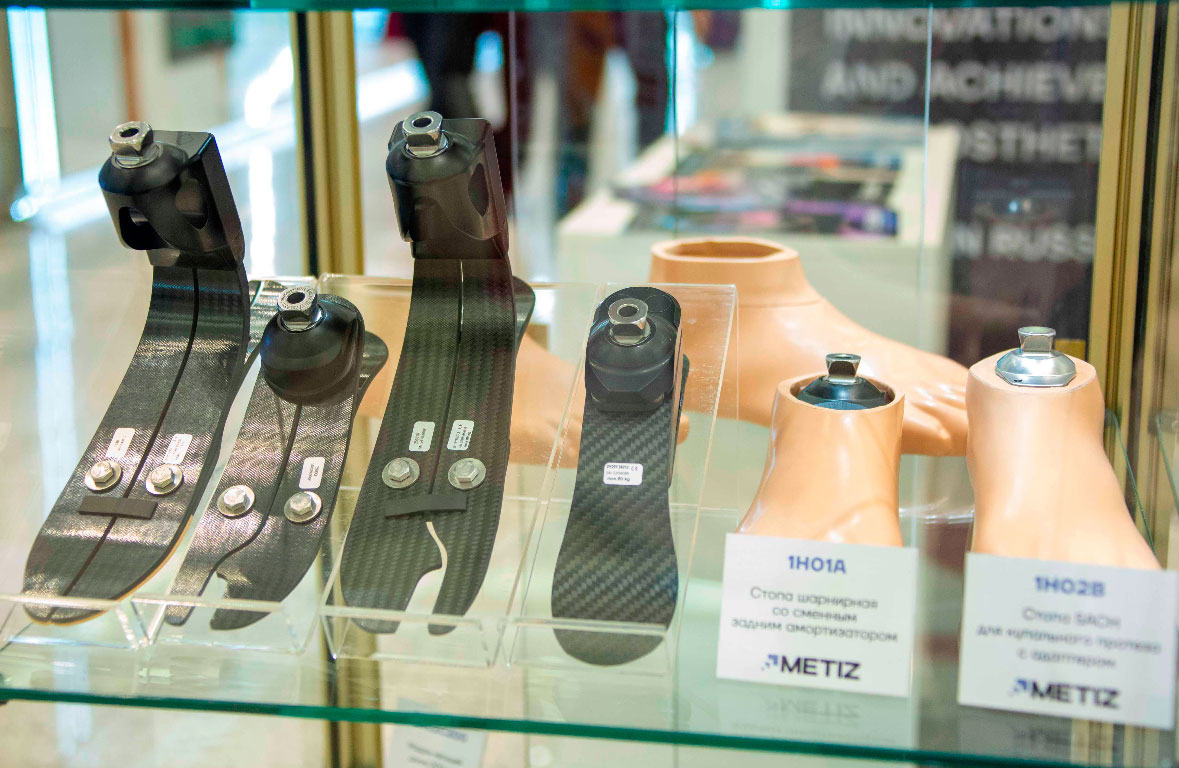 Among the exhibits were carbon fiber feet, knee modules, as well as specialized waterproof modules and prosthetic feet. These high-tech devices, created using advanced materials, enable people with disabilities not only to return to an active lifestyle but also to achieve high performance in sports.
