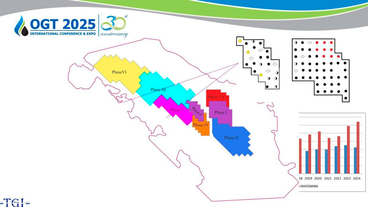— The Galkynysh field is being developed according to a phased strategy, consisting of seven stages. Currently, the pilot-industrial operation of the first stage is underway. The operational well stock comprises 52 wells, with an additional 7 wells prepared for commissioning, and 8 wells currently under active drilling.