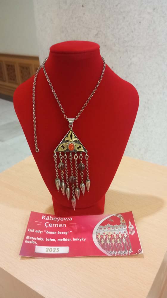 All the works, created in national motifs, are filled with love for the Motherland and reflect the unique culture and history of the Turkmen people. Some pieces are being displayed for the first time, such as the works of Ch. Kabeyeva, a recent graduate of the jewelry department of the State Academy of Arts of Turkmenistan. The women’s jewelry skillfully made by her captivate viewers with its beauty and elegance, and with the masterful use of the fine techniques of the ancient craft of Turkmen zergers.