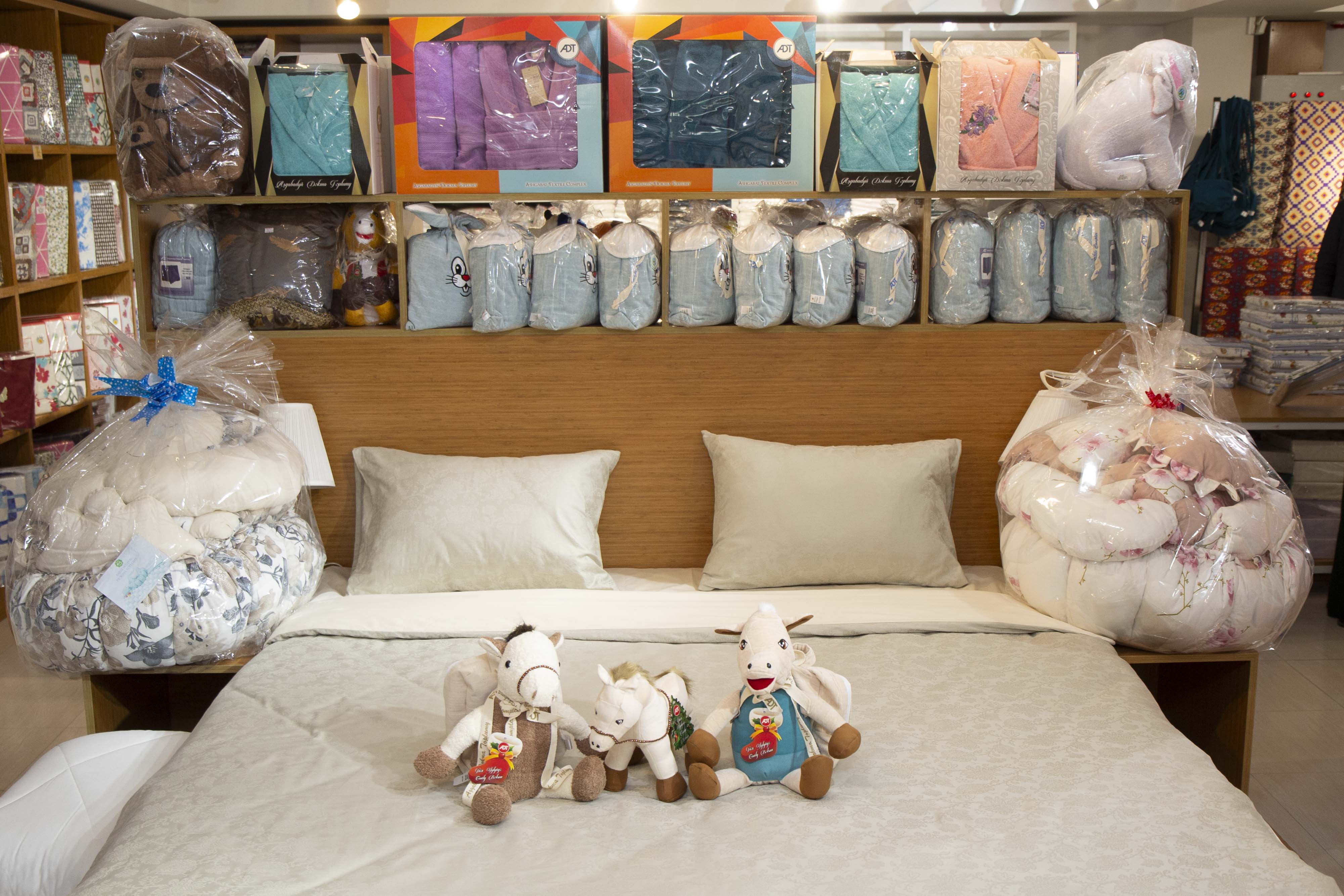 This year, a textile toy in the shape of a Turkmen horse has become a bestseller. These funny horses with miniature backpacks are an original solution for packaging souvenirs or oriental sweets. Also popular in the segment of children are functional sets for newborns – sets with bathrobes made from environmentally friendly cotton.