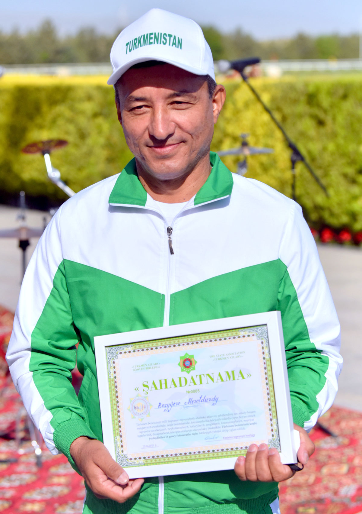 The prizes from the head of the state have also been awarded to the teacher of the Sculpture Department of the State Art Academy of Turkmenistan M. Hojainov for the sculpture composition «Türkmenistan – parahatçylygyň we ynanyşmagyň Watany»; photographer of the State News Agency of Turkmenistan M.Roziyev for the best printing production – the photos of Turkmen horse «Türkmeniň uçar ganaty», TV operator of the «Watan habarlary» department of «Altyn asyr: Türkmenistan» TV and radio channel of the State Committee of Turkmenistan for Television, Radio Broadcasting and Cinematography B.Ramazaov for the best television footages «Türkmen bedewi».