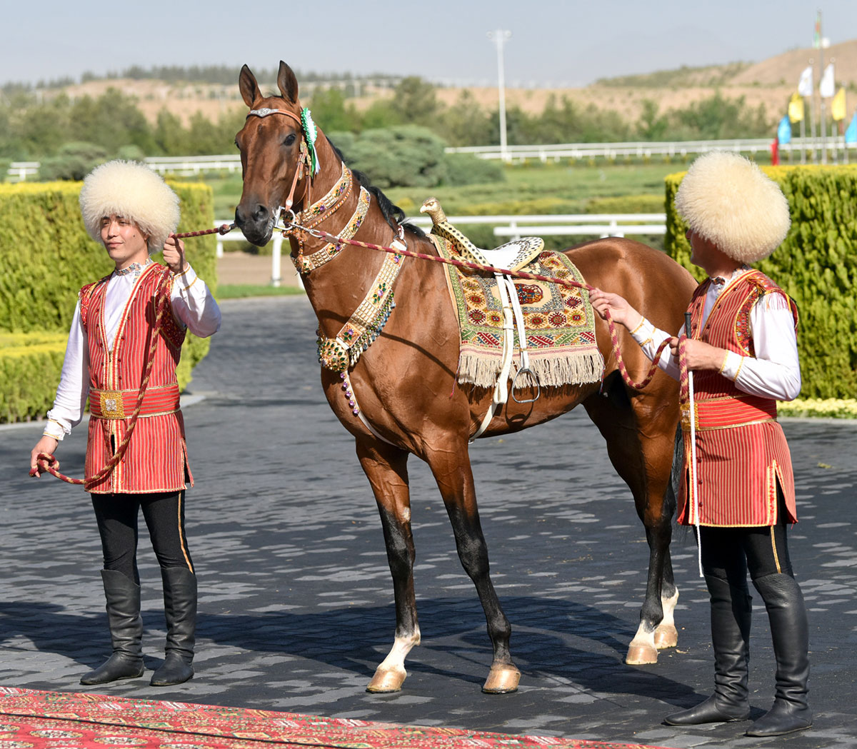 Deputy Chairmen of the Cabinet of Ministers, heads of the People’s Council and Mejlis of National Assembly, military and law enforcement agencies, heads of the regions and Ashgabat, ministries and profile departments, public organizations and mass media have gathered at the square in front of Ahalteke Equestrian Complex of the President of Turkmenistan. Famous horse breeders have also participated in the events.