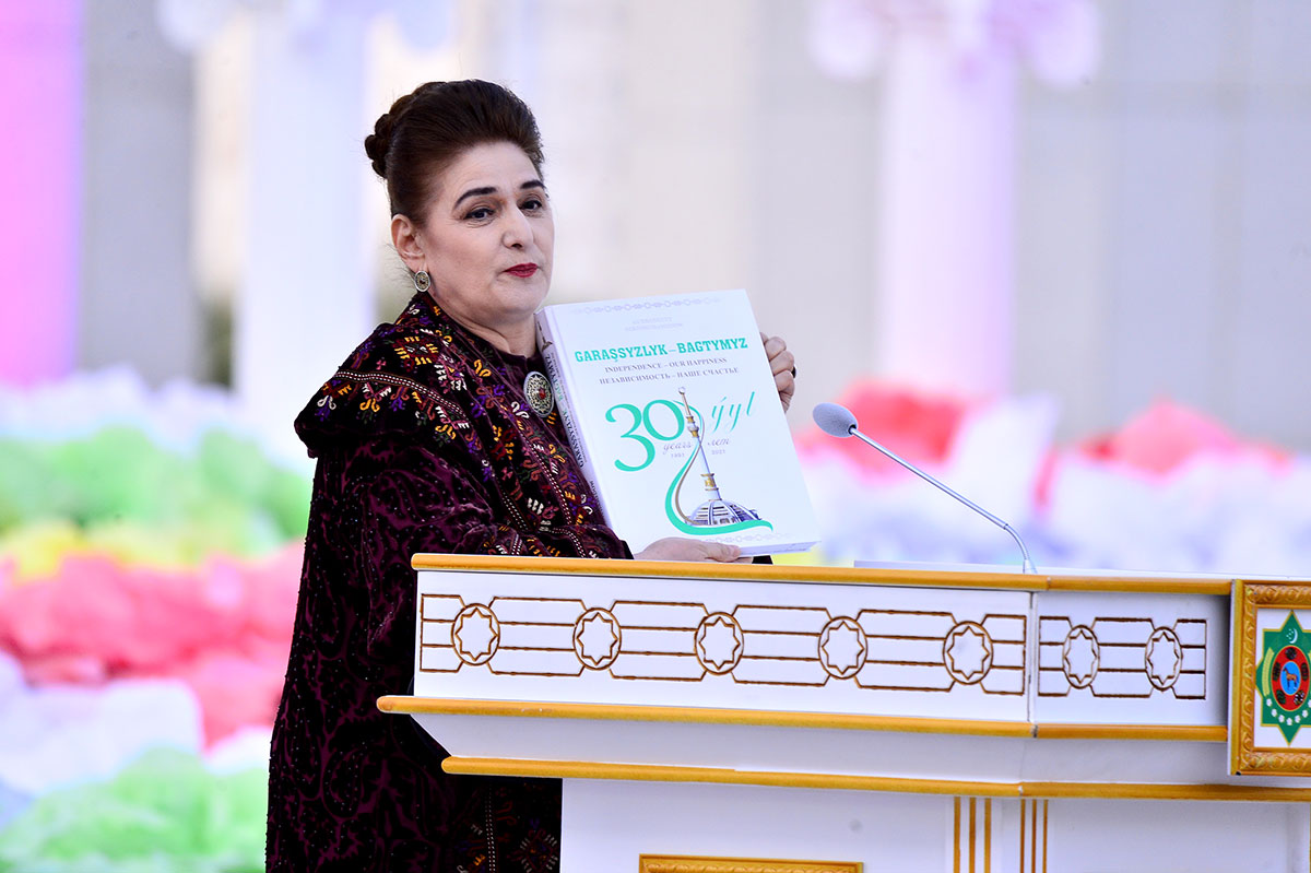 Today in the capital solemn presentations of the book by President Gurbanguly Berdimuhamedov "Independence - our happiness" has taken place. The new edition was a remarkable gift to compatriots and numerous friends of our country to the 30th anniversary of independence of our Homeland. It is known that the leader of the nation handed its first copies to participants of the meeting of the Khalk Maslakhaty, which took place on September 25.
