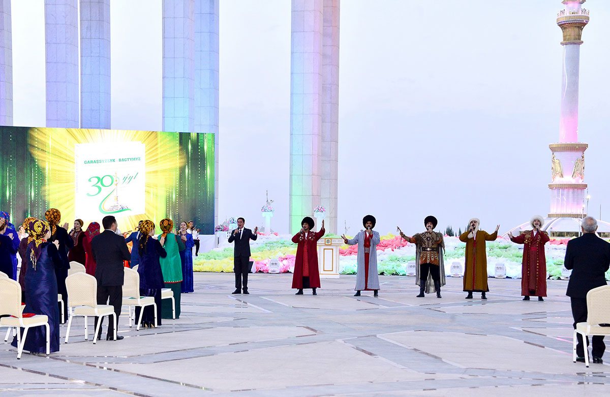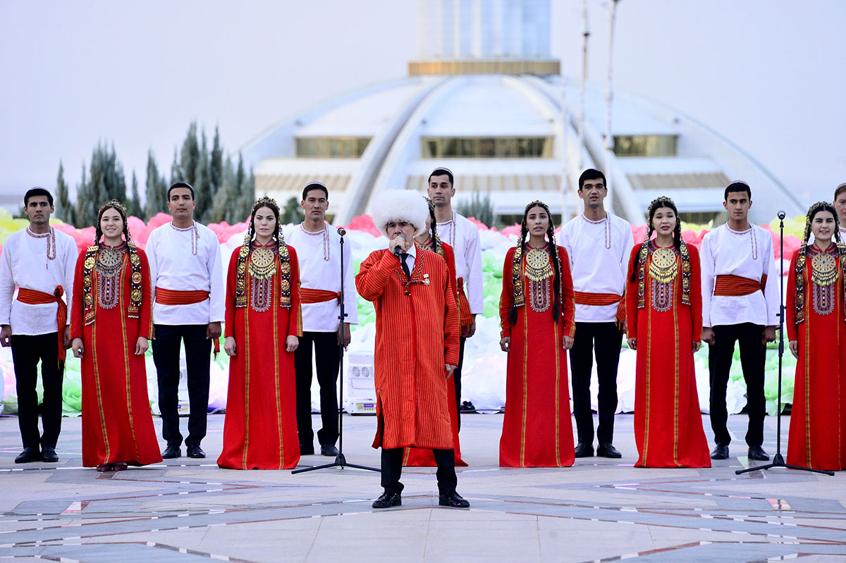 Today heads of the sphere of culture, branch institutions and departments, including velayat divisions, editors of newspapers and magazines, masters of art, students of creative higher education institutions, media participated in the festive event, which was taking place on the square at the Mukam Palace of the State Culture Centre of Turkmenistan.