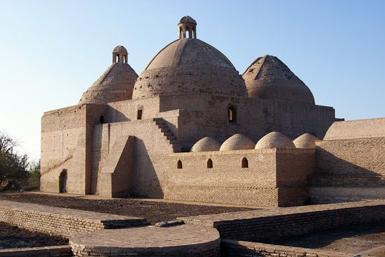 The well-preserved monument, located at the foot of the majestic Omar-kala hill, testifies to the high level of architectural excellence in this region during the 11th-12th centuries. The building emphasizes all the distinctive features of the monumental architecture of that ancient era. These are impressive dimensions in the plan, and ornamental brickwork with the use of figured carved bricks, and the entrance portal, highlighted on one of the four facades. Three hundred years after the construction of the mausoleum, such portals became the main means of expression in the architecture of Central Asia, Iran, and then the entire Islamic world.