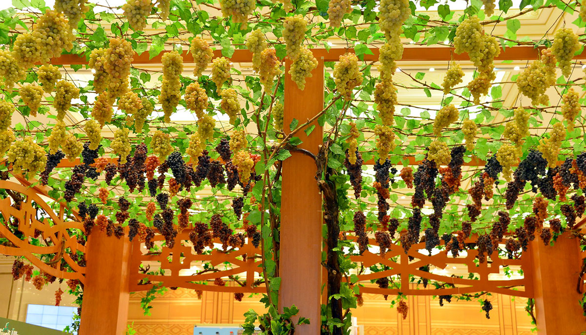 The guests' particular attention was drawn to the colorful design of the exposition with a variety of grape varieties. Domestic winegrowers today successfully cultivate both the ancient Turkmen varieties “Terbash” and “Garauzum”, and the varieties “Cabernet”, “Saperavi”, “Taifi rosy”, etc.