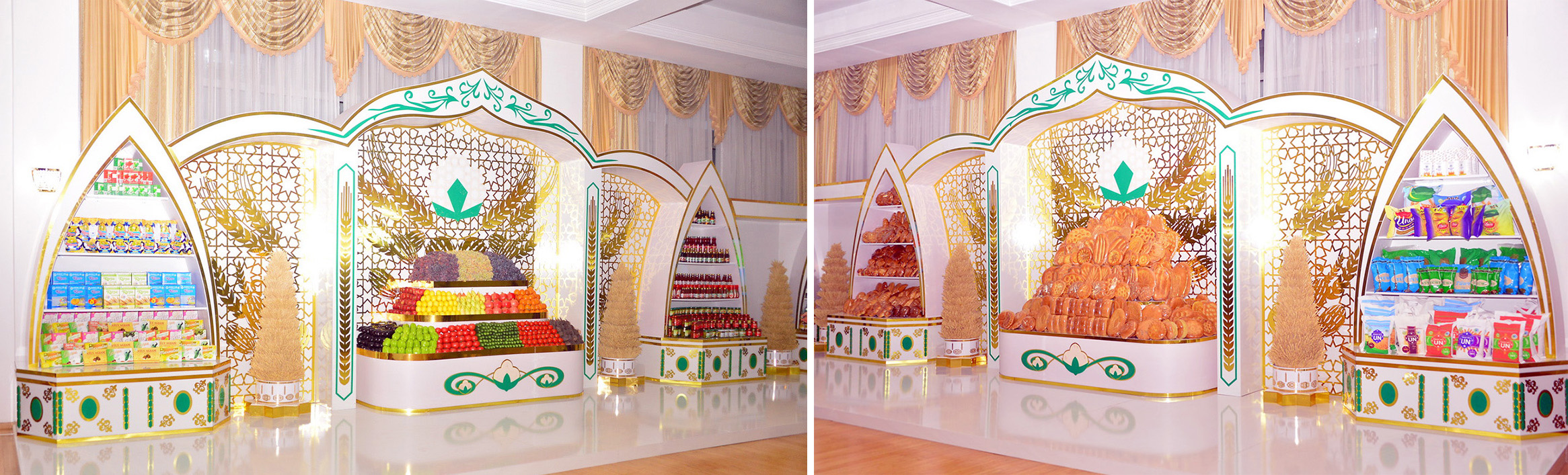 An exhibition was organized in the foyer of the Mekan Palace, prepared by specialized departments and enterprises. Here, in a large assortment, the products of the cotton-growing and cotton-processing, grain-growing industries, food industry, as well as elite varieties of seeds were demonstrated.