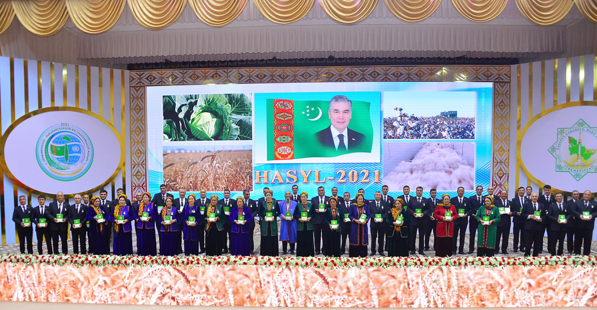An award ceremony was held today, in the capital's Mekan Palace, on behalf of the leader of the nation Gurbanguly Berdimuhamedov, for tenants, cotton growers, grain growers, machine operators, agricultural scientists, breeders and other agricultural specialists who make a worthy contribution to the development of the country's agricultural sector.