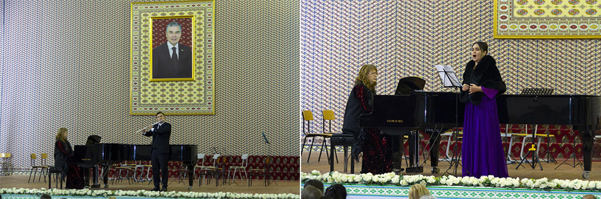 A fifth-year student of TNK named after M. Kulieva Emir Bayramgeldiev performed an etude by F. Liszt on the flute, transferring the audience to the era of the author. Honored Artist Bibidzhemal Amanova bewitched the audience with her voice with Amina's aria from the opera "Somnambule" by V. Bellini.