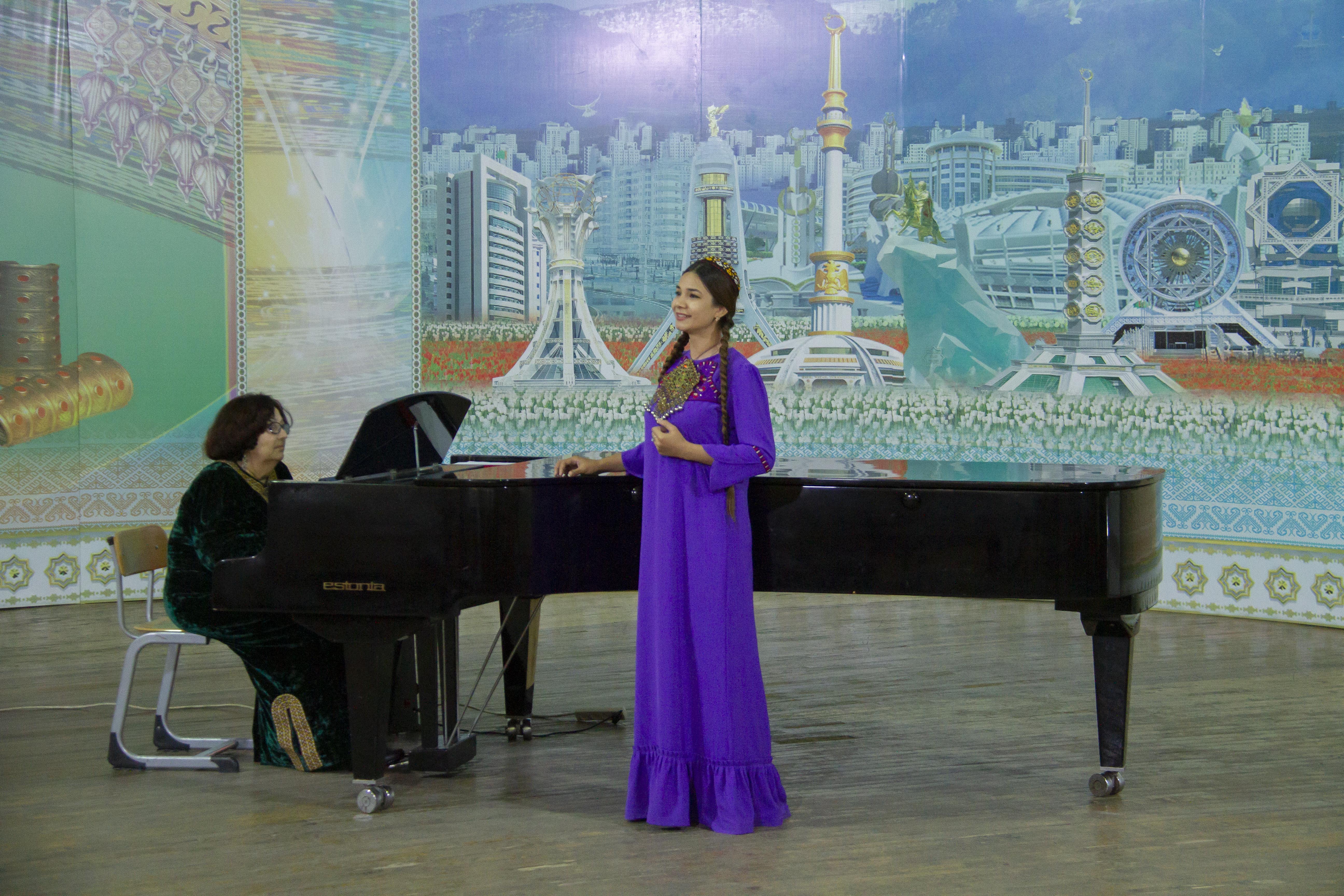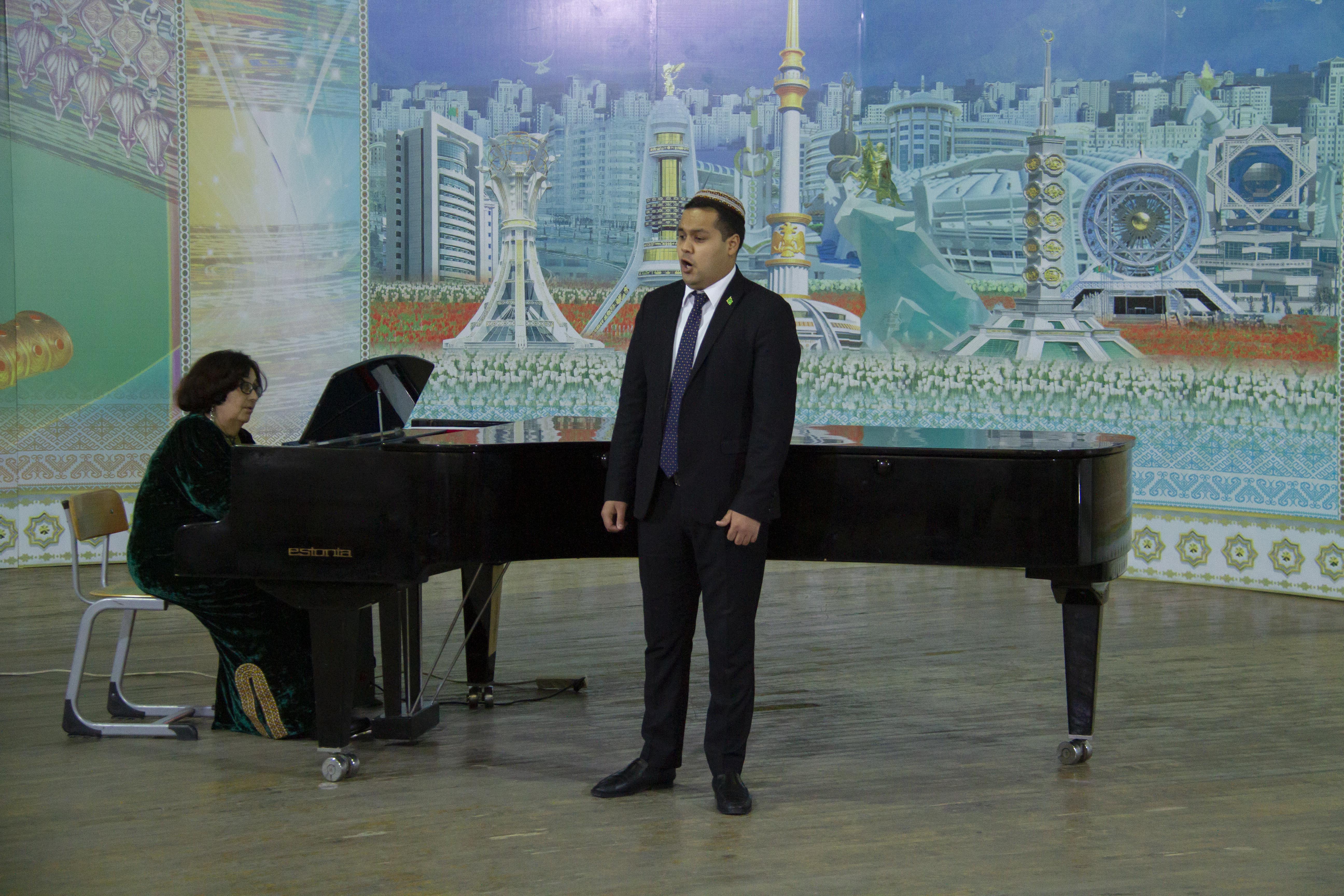 Every student performed two items: one- from Russian and West European classics, another - from famous Turkmen classic compositions. The wonderful melodies of Eduardi di Capua, Umberto Giordano, Franz Schubert, Francesco Chilea, Giacomo Puccini, Ruggiero Leonkovallo, Pyotr Ilyich Tchaikovsky, Sergei Rachmaninov, Aman Agadzhikov, Nury Mukhatov, Chary Nurymov, Latukh Hameidi sounded in Small Hall.