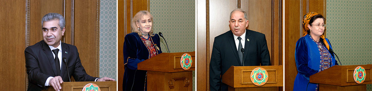 Then the floor was given to the Hero of Turkmenistan, People’s writer of Turkmenistan, poetess, laureate of Magtymguly International prize Gozel Shagulyyeva, deputy of Majlis of National Council of Turkmenistan Ayshat Gijenova, head of division of «Garagum» magazine, People’s writer of Turkmenistan Dovletgeldi Annamyradov, executive secretary of «Türkmen dünýäsi» newspaper, Honoured journalist of Turkmenistan Döwran Agalyýew, a singer of National Magtymguly musical theatre of Turkmenistan Gulshirin Annamyradova.